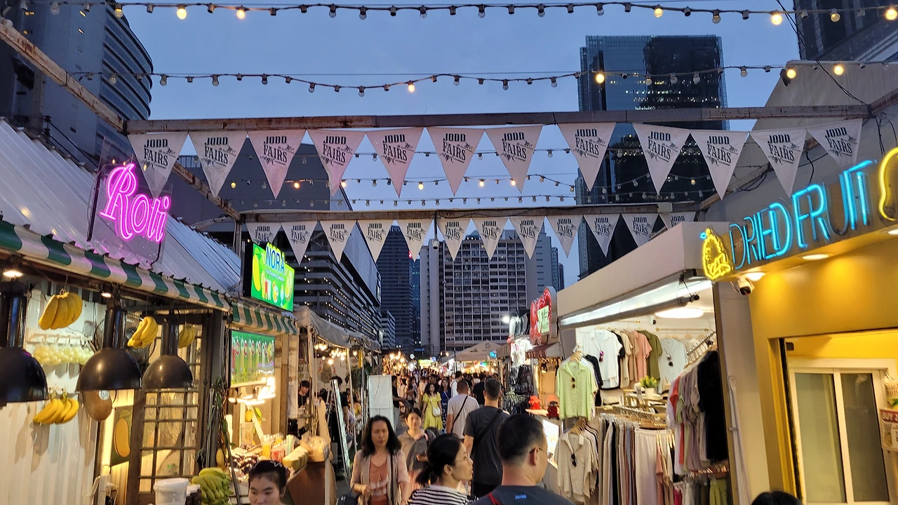 활기가 넘치는 거리를 걸어서 대형 쇼핑몰로 가는 길이 흐린 날씨 덕분에 그리 덥지는 않았다. 평일 낮에도 붐비는 쇼핑몰을 돌아다니다가 두 다리를 조금 쉴 겸 다시 호텔로 돌아왔다. 호텔 옥상에 루프탑 수영장이 있어서 오후에 수영으로 에너지를 쏟고 저녁 식사를 하기로 했다. 작은 수영장이지만 우리가 놀기에는 부족함이 없었다. 한참 놀고 나서 객실로 돌아와 나갈 준비를 했다. 우리의 저녁을 책임져줄 곳은 바로 야시장이었다. 야시장이 호텔에서 3km 거리라서 택시로 갈지, 지하철로 갈지 고민이 되었는데 퇴근시간이라 엄청 밀릴 것 같아서 걸어가 보기로 했다. 이 선택이 방콕이라는 거대 도시가 가져다주는 혼잡함과 매연, 소음의 종합세트로 우리에게 올지 몰랐다. 수많은 자동차와 오토바이가 달리는 도로가 동남아시아의 대표 도시임을 일깨워줬다.