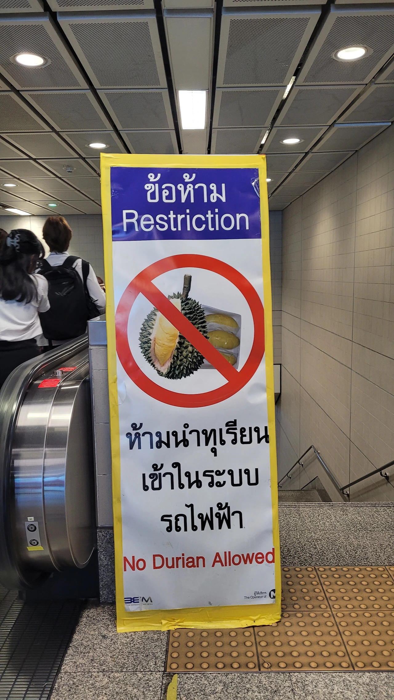 돌아오는 길은 지하철을 타기로 해서 갔는데 두리안을 들고 타지말라는 경고문이 있어서 이색적이었다. 들고 타서 문제가 된 경우가 있었던 듯 했다. 호텔 근처 역에 내려서 걸어오는 길에 편의점에서 소소한 간식을 샀다. 그런데 여기서 카드가 200바트 이상 사야 가능해서 신기했다. 점심 식사 했던 곳이나 야시장에서도 다 현금만 받고, 카드는 더 가격을 붙여서 결제하려고 한 게 수수료가 비싸서 그런가 했다. 혹시나 해서 현금을 환전해 온 것이 다행이었다. 제대로 시작한 여행 첫날이라서 참 여러 요리를 맛보았고, 배가 불러서 운동할 겸 원래는 호텔로 들어와서 야간 수영을 할까 했지만 고생한 두 발이 생각나서 하루를 다소 일찍 마무리하기로 했다.