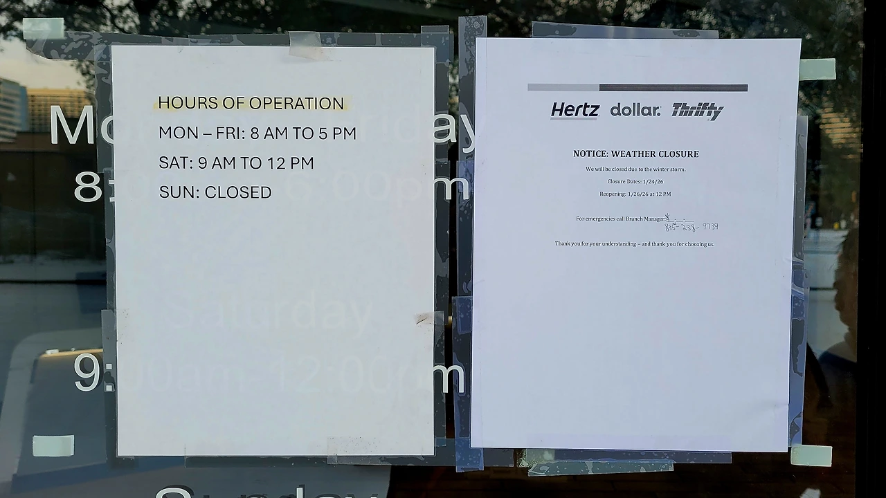전날 장을 보지 못한 탓에 아침 식사를 해결하기 위해 숙소 건너편에 있는 베이글 가게로 테이크아웃을 하러 나섰지만, 문을 나서는 순간 얼굴을 스치는 겨울 공기가 만만치 않았다. 텍사스라는 이름에서 떠올렸던 온화한 기후의 이미지는 이 도시 어디에도 없었다. 그리고 가게 앞에 도착했을 때, 문은 굳게 닫혀 있었다. 이 가게만의 문제가 아니었다. 주변의 다른 카페와 식당들 역시 모두 문을 닫은 상태였다. 도시 전체가 잠시 숨을 멈춘 듯했다.