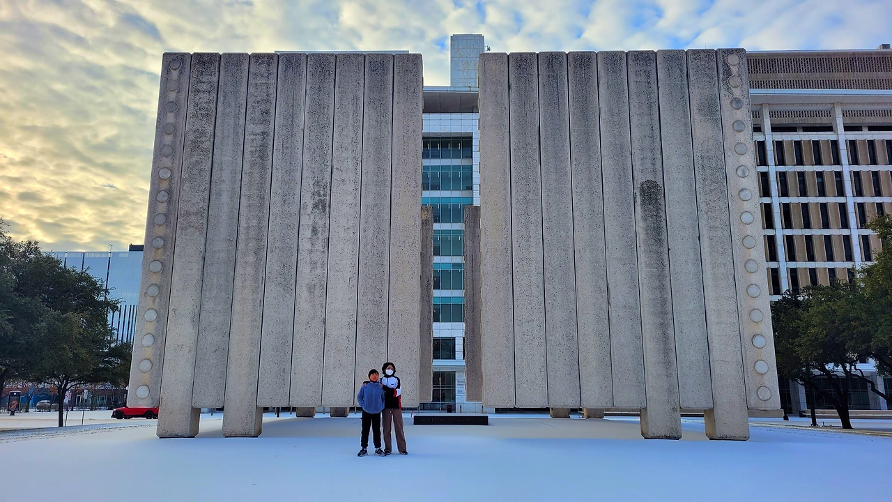 걷다 보니 존 F. 케네디 대통령이 암살당했던 메모리얼 플라자(John F. Kennedy Memorial Plaza)에 이르렀다. 눈이 쌓인 거리 위의 풍경은 우리나라의 눈과 달랐다. 녹았다가 다시 얼어붙은 눈은 거의 아이스링크처럼 변해 있었고, 한 걸음 한 걸음이 조심스러웠다. 케네디 대통령 암살은 1963년 11월 22일, 댈러스의 딜리 플라자에서 발생한 미국 현대사 최대의 비극 중 하나였다. 제35대 미국 대통령이었던 존 F. 케네디는 퍼레이드 차량을 타고 이동하던 중 저격당해 사망했고, 이 사건은 미국 사회 전반에 깊은 충격과 불신을 남겼다. 이후 수많은 조사와 음모론이 이어졌으며, 지금까지도 미국 역사에서 가장 논쟁적인 사건 가운데 하나로 남아 있다. 눈 덮인 침묵 속의 그 장소는 과거의 비극을 과장하지도, 지우지도 않은 채 그대로 품고 있는 듯했다.