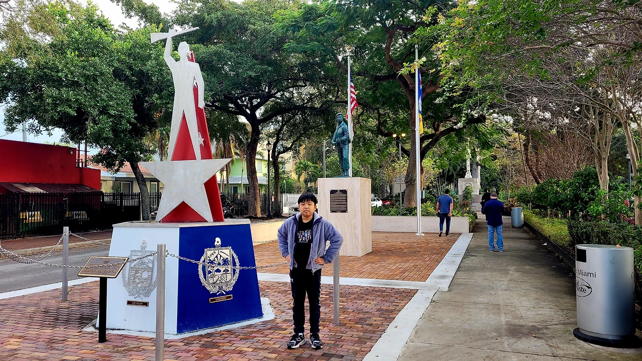 숙소에 도착해 짐을 풀고, 우리는 장을 보기 위해 다시 밖으로 나섰다. 숙소는 리틀 아바나(Little Havana)의 끝자락에 있었다. 나온 김에 동네를 조금 둘러보기로 했다. 리틀 아바나는 마이애미에 정착한 쿠바 이민자들의 삶과 문화가 응축된 지역이었다. 1960년대 쿠바 혁명 이후 미국으로 이주한 사람들이 모여 형성한 지역으로, 중심 거리인 칼레 오초를 따라 카페와 식당, 시가 상점, 음악 공연장이 이어졌다. 규모는 크지 않지만 밀도가 높고, 명성이 자자한 만큼 전 세계에서 많이 찾는 구역이었다. 스페인어가 일상처럼 들리고, 거리에는 쿠바 국기와 체 게바라의 초상이 자연스럽게 걸려 있었다. 이곳은 관광지이면서 동시에 살아 있는 동네로 보였다. 축제와 퍼레이드가 잦고, 도미노 공원에서는 노인들이 진지하게 판을 벌렸다. 리틀 아바나는 마이애미 안에 존재하는 또 하나의 나라처럼 느껴졌다.