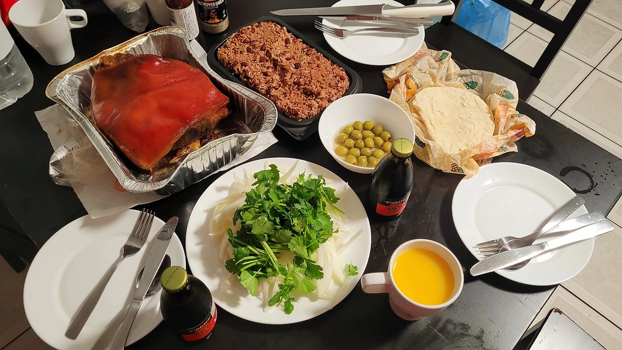 양손 가득 마이애미의 식량을 들고 숙소로 돌아왔다. 저녁 식사는 소박하지만 풍성했다. 돼지 앞다리로 만든 아사도(Paleta de Cerdo Asada)에 양파와 고수를 얹고 토르티야로 감싸 타코를 만들었다. 한편으로는 우리가 중남미 팥밥이라고 부르는 모로스 이 크리스티아노스