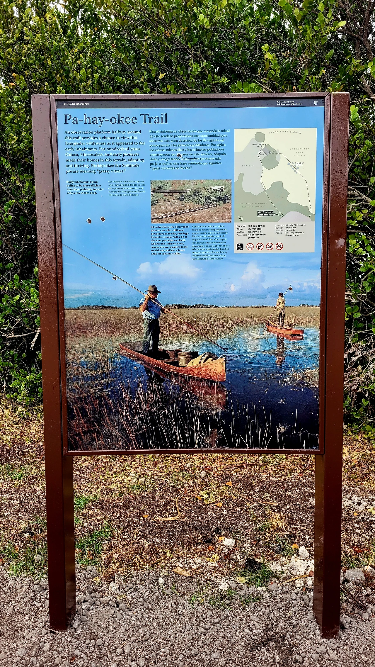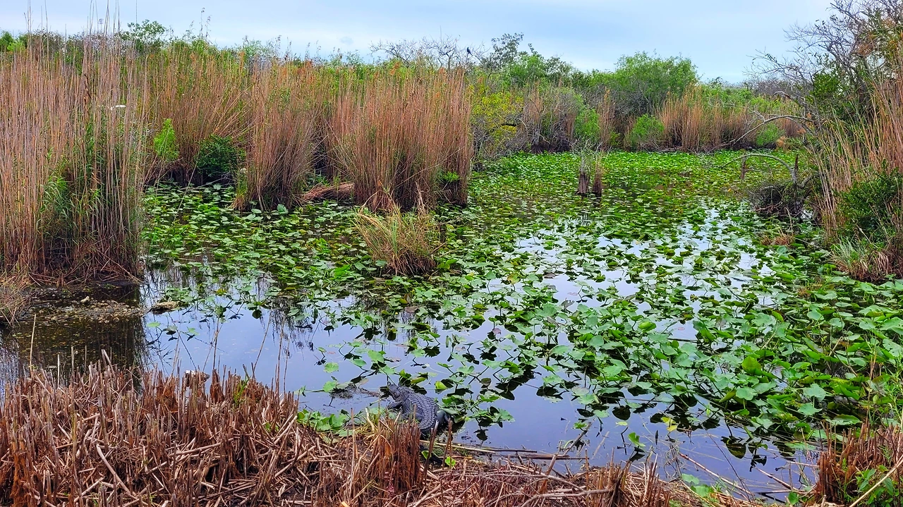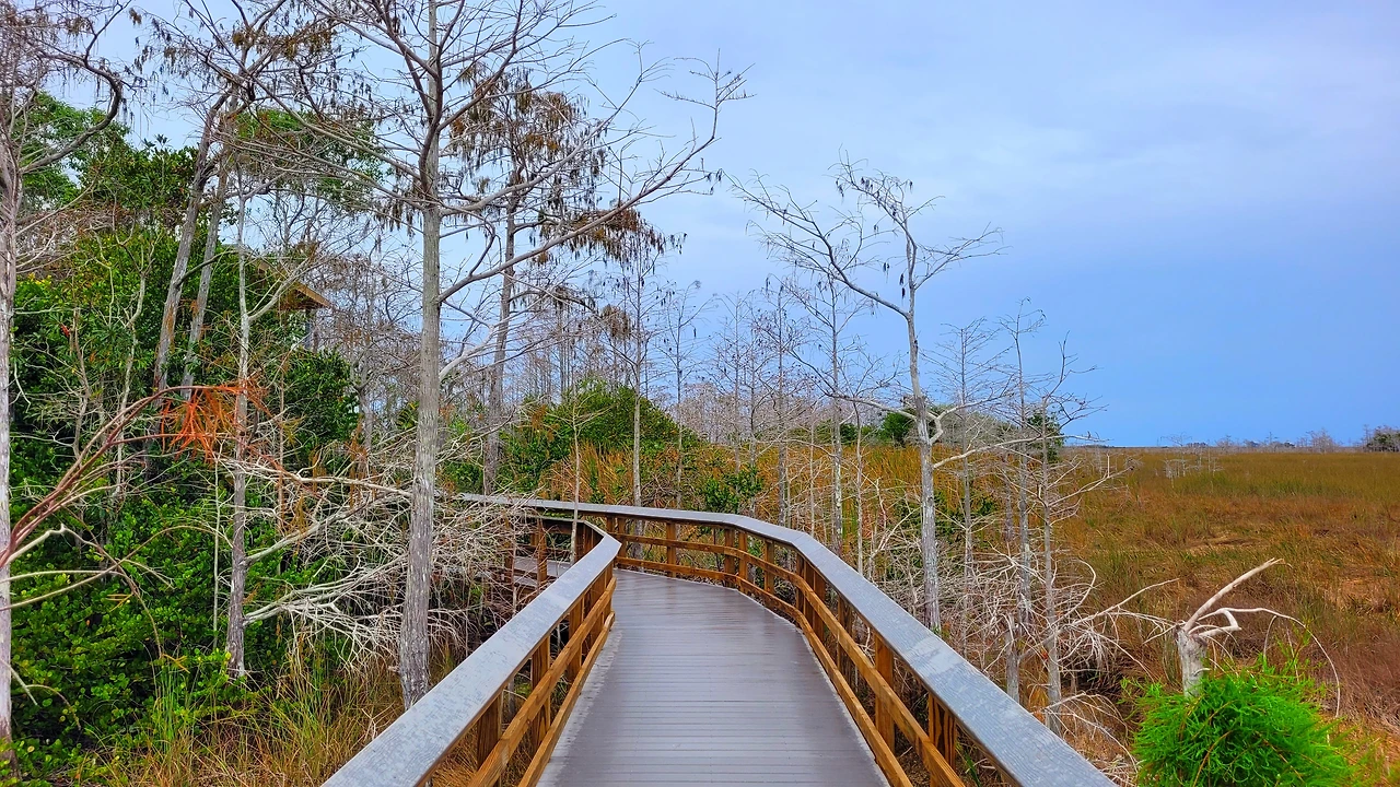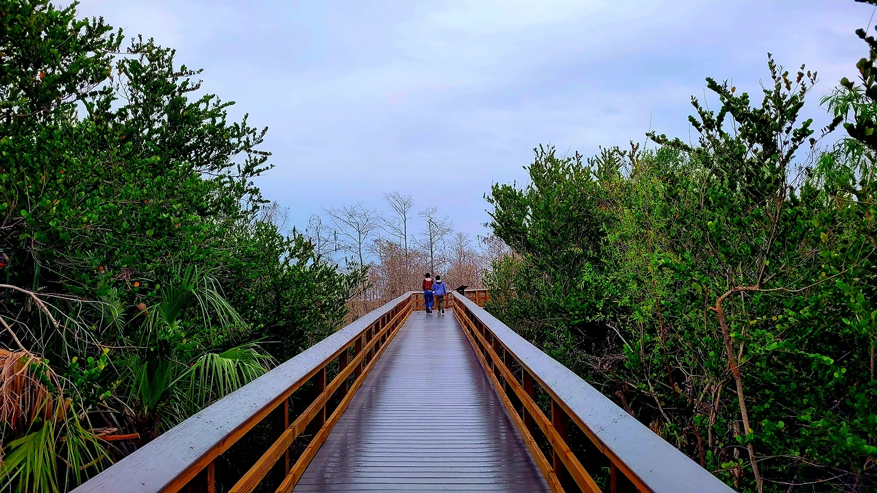 에버글라데스 국립공원(Everglades National Park)은 미국 남부 플로리다에 위치한 거대한 습지 국립공원이다. 면적은 약 6,100km²로서, 충청북도 면적보다 살짝 작은 정도였다. 이곳은 늪지와 초원, 맹그로브 숲이 어우러진 독특한 생태계를 이루고 있다. 흔히 강이라고 생각하는 물줄기는 사실상 거의 흐르지 않는 얕은 물의 평원으로, '풀의 강'이라 불렸다. 악어, 희귀한 새들과 파충류가 공존하며, 인간의 개입이 최소화된 자연의 원형에 가까운 모습을 유지하고 있었다. 미국의 국립공원이 그렇듯 이곳도 살아 있는 생태계 그 자체였다.