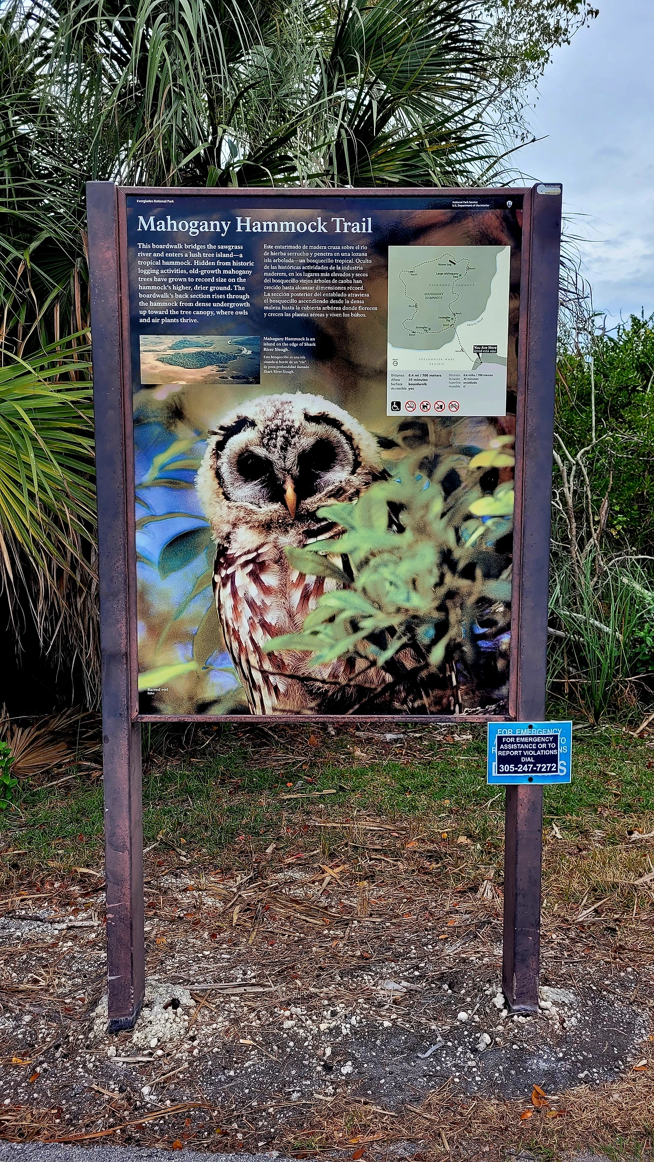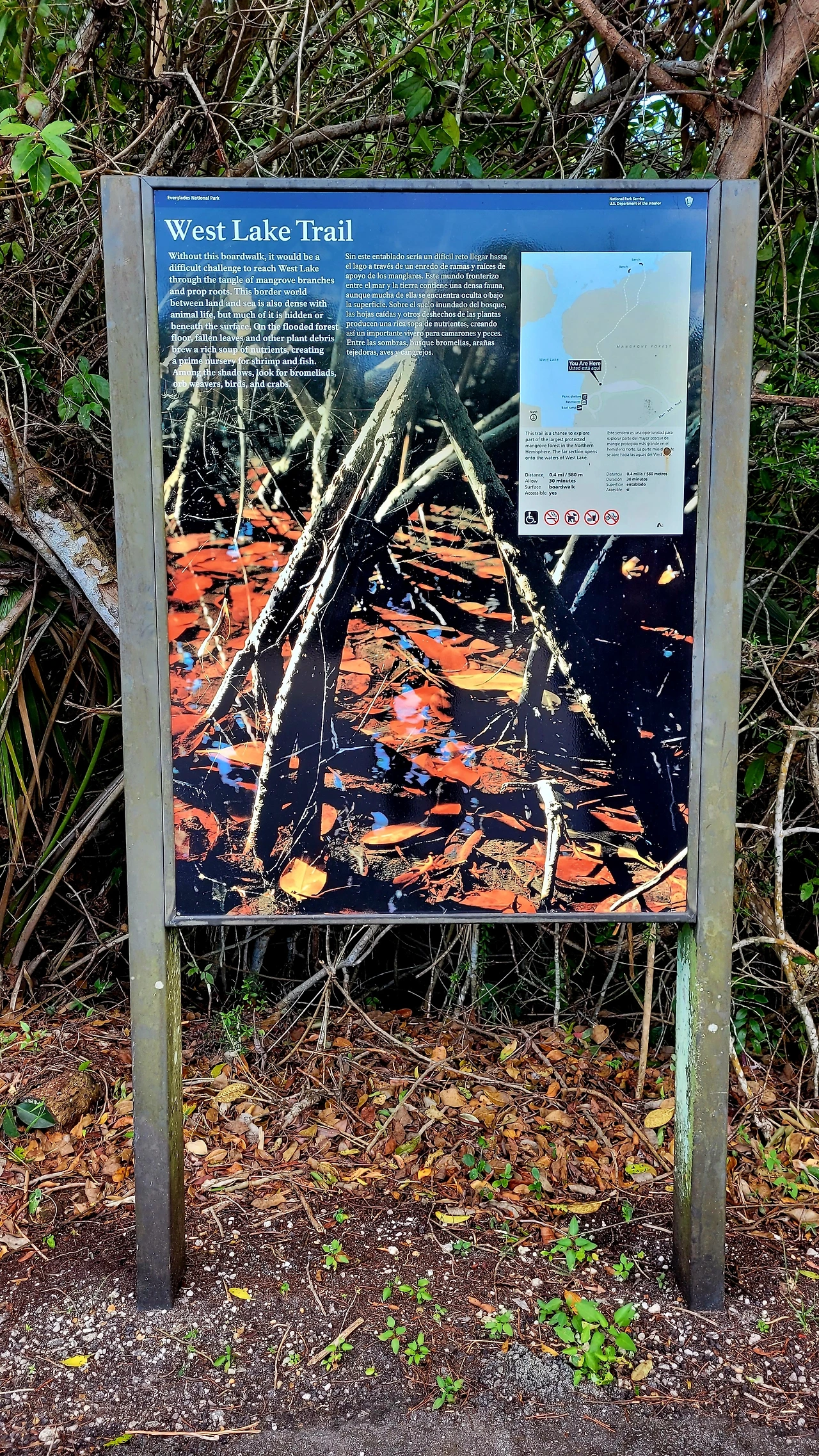 마호가니 해먹 트레일(Mahogany Hammock Trail)을 걷는 것으로 오후 일정이 계속 이어졌다. 전반적으로 이 국립공원의 트레일들은 짧은 구간들로 나뉘어 있어 긴 호흡이나 체력을 요구하지 않는 산책로에 가까웠다. 나무 데크 위를 따라 몇 분씩 걷다 보면 어느새 끝이 나 있었고, 그래서인지 마음에 큰 파문을 남기지는 않았다. 특별히 인상적인 장면이 있다기보다는 국립공원의 한 페이지를 넘기는 느낌에 가까웠다. 자연이 주는 감동은 같은 방식으로 다가오지 않는다는 것을 확인하는 시간이었다.
