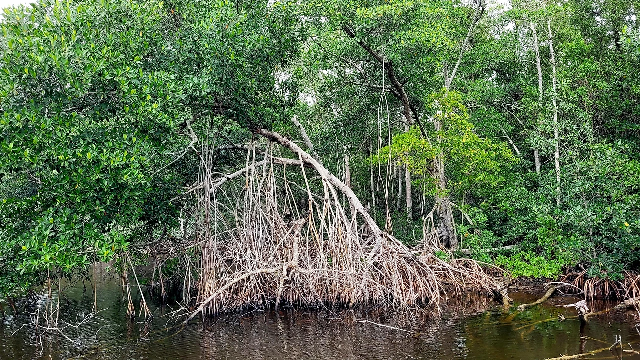 플로리다는 미국에서 유일하게 열대기후의 흔적을 품은 지역이라 했다. 그래서인지 페리를 타고 바라보는 풍경은 지금까지 봐온 미국의 자연과는 결이 달랐다. 빽빽한 숲은 더 낮고 넓게 퍼져 있었고, 물과 땅의 경계는 흐릿했다. 페리가 움직이기 시작하자 가이드는 맹그로브 숲에 대해 설명했다. 뿌리가 물 위로 드러난 나무들은 처음엔 기괴해 보였지만, 곧 이곳 생태계의 핵심이라는 사실이 이해되었다. 허리케인이 이 지역을 덮쳤을 때 어떤 피해가 있었는지, 또 그 이후 자연이 어떻게 회복되었는지에 대한 이야기도 이어졌다. 악어에 대한 설명이 나왔지만, 상대적으로 추운 날씨 탓에 오늘은 거의 보이지 않는다고 했다. 기대를 품었던 아이는 조금 아쉬운 표정이었지만, 대신 눈앞의 풍경에 집중하기 시작했다.