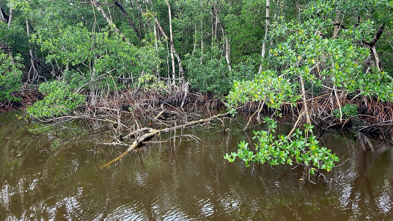 배는 강줄기를 따라 쿳 베이(Coot Bay)를 지나갔다. 물길은 점점 넓어졌고, 어느 순간 바다로 착각할 정도로 시야가 트였다. 그곳이 바로 화이트워터 베이(Whitewater Bay)였다. 이름처럼 물빛은 밝았고, 수평선은 흐릿했다. 이곳이 습지인지, 만인지, 바다인지 구분하기 어려운 풍경이 오히려 인상 깊었다. 자연은 늘 인간이 만든 분류보다 훨씬 자유롭다는 생각이 들었다. 1시간 30분의 투어는 전혀 길게 느껴지지 않았다. 중간에 빗줄기가 잠시 내렸지만, 날씨가 크게 나빠지지는 않았다. 비는 오히려 풍경의 색을 한 톤 낮추며 분위기를 바꾸어 주었다. 여기까지 와서 이 정도를 보고 경험했다는 사실만으로도 충분하다는 생각이 들었다. 이 여행이 아니었다면, 이곳은 내 삶의 지도에 영영 표시되지 않았을 장소였을 것이다.