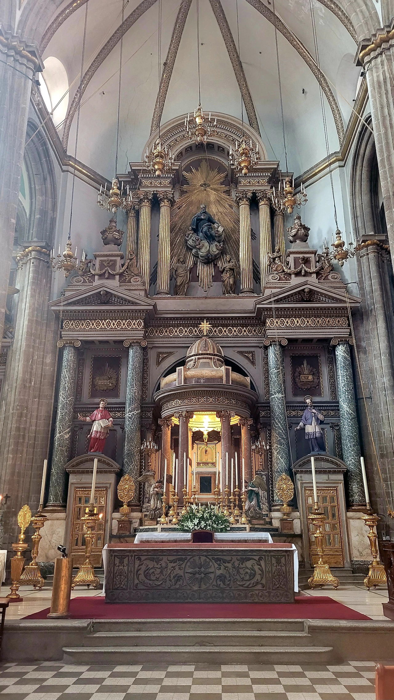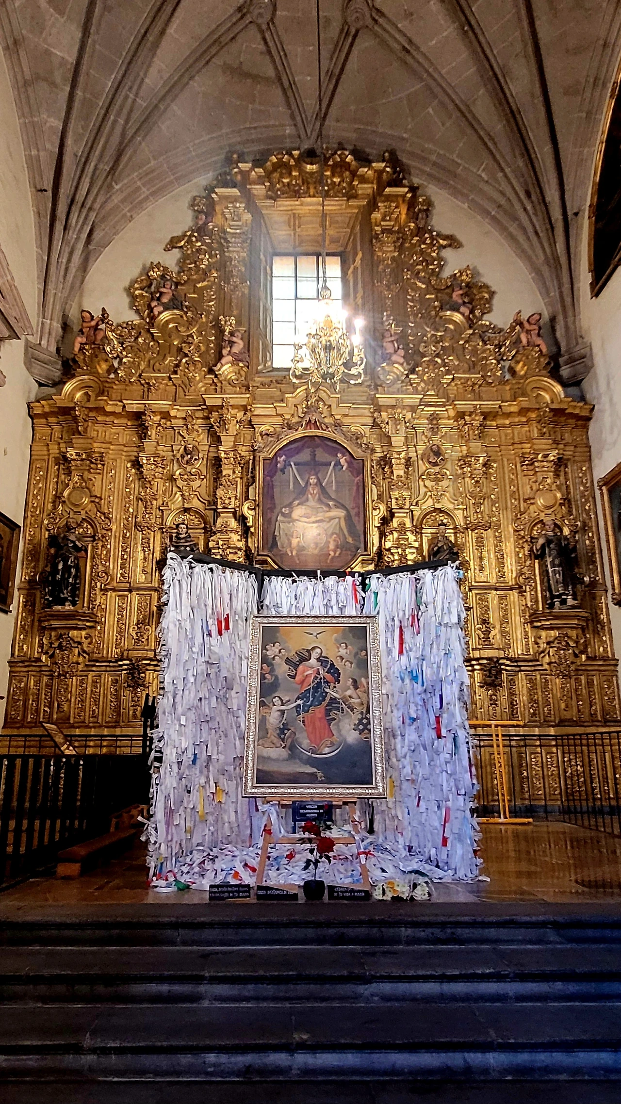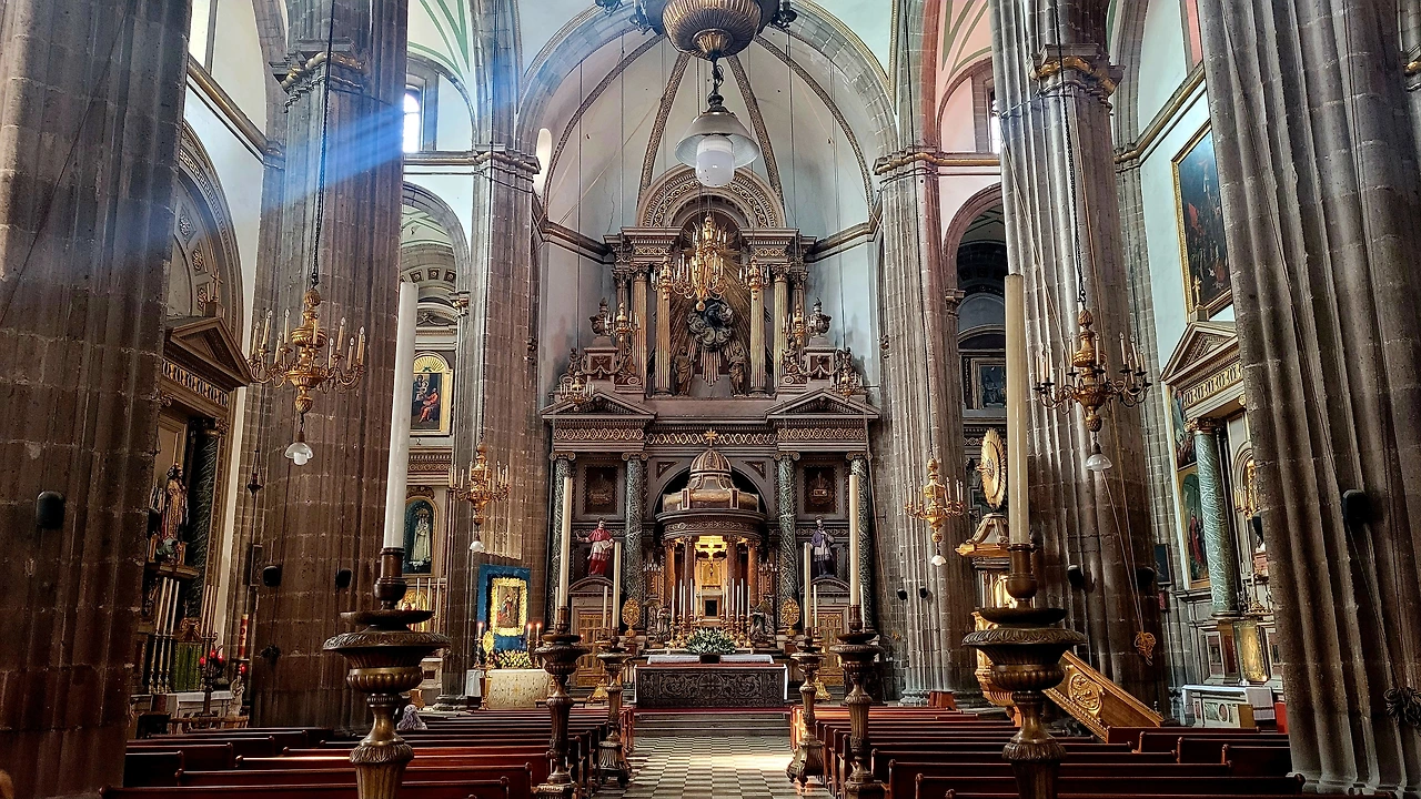 잠시 쉼표를 찍은 뒤 멕시코시티 메트로폴리탄 대성당(Catedral Metropolitana de la Ciudad de México)으로 향했다. 볕이 좋아 걷기 좋은 오후였다. 대성당으로 가기 전에 성 펠리페 네리 성당이 있어서 들어가 보니 유럽의 여느 성당 못지않게 화려하지만 고요한 분위기를 풍겼다. 잠시 기도를 드리고 나와서 다시 걷자 멕시코시티의 센트로에서도 중심인 메트로폴리탄 대성당이 보였다. 처음에 들어가는 정문을 못 찾아서 옆문으로 들어갔는데, 그곳은 대성당과 붙여있는 사그라리오 메트로폴리타노 성당이었다. 이 대성당은 아메리카 대륙에서 가장 크고 오래된 성당 중 하나로서, 스페인 식민지 시대의 신앙과 권력이 응축된 공간이었다. 고딕과 바로크, 르네상스 양식이 혼합된 내부는 장엄하면서도 무게감이 있었다. 수세기 동안 이어진 기도와 침묵이 공간에 스며 있는 듯했다.