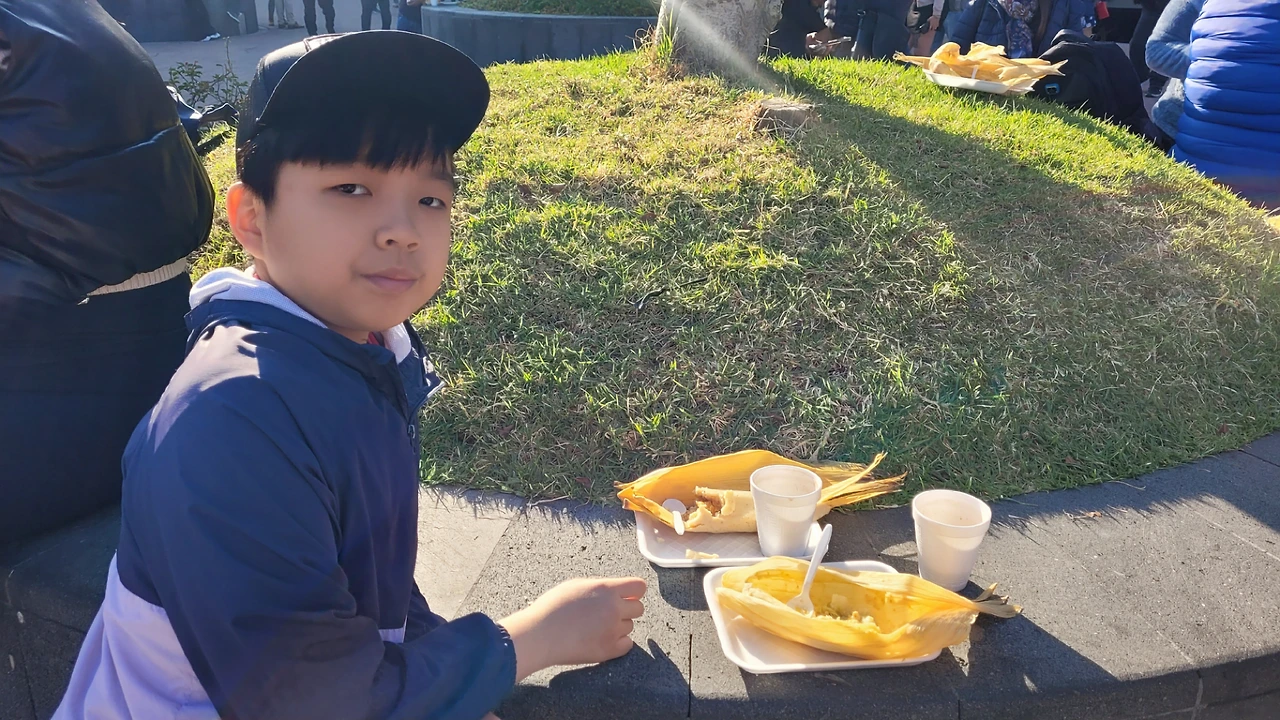 멕시코에서는 이 축일이 생활 문화와 깊이 결합되어 있었다. 사람들은 타말레스 파티를 열고 타말과 아톨레를 나눠 먹는데, 사람들이 들고 다닌 것이 그것이었다. 타말(Tamal)은 옥수수 반죽에 고기나 소를 넣어 옥수수잎에 싸서 찐 전통 음식으로, 우리가 본 것은 옥수수잎에 단단히 싸인 타말이었다. 아톨레(Atole)는 옥수수 전분을 물이나 우유에 풀어 끓인 음료로서, 설탕과 계피를 넣으면 아톨레 데 카넬라(Atole de Canela)가 되었다. 우리가 마신 아톨레는 걸쭉한 수정과 같은 맛이 났다. 이런 풍경을 마주하니 자유여행의 묘미가 이런 순간에 있다는 생각이 들었다. 행사에 대해 잘 몰라 옆에 서 있던 경찰관에게 물어보니 친절히 설명해 주었다. 우리가 한국에서 온 천주교 신자라고 하자 그는 웃으며 고개를 끄덕였다.