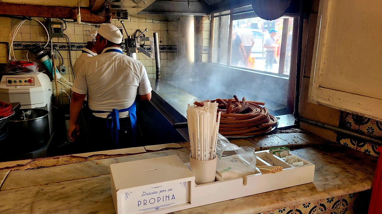 식사 후에는 근처 추로스 카페에 들러 잠시 여유를 즐겼다. 길고 바삭한 추로스를 한 입 베어 무니 스페인 여행의 기억이 자연스럽게 떠올랐다. 커피로는 어제와 똑같이 카페 데 오야(Café de Olla)를 마셨다. 이 커피는 점토 냄비에 계피와 흑설탕을 넣어 끓이는 멕시코 전통 커피로써 달콤하면서도 향신료의 향이 인상적이었다. 멕시코 커피 하면 바로 떠올릴 만한 맛이었다.