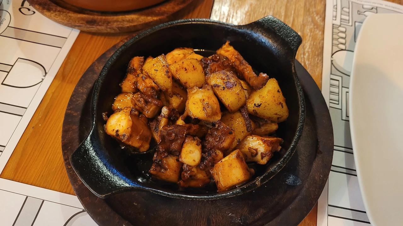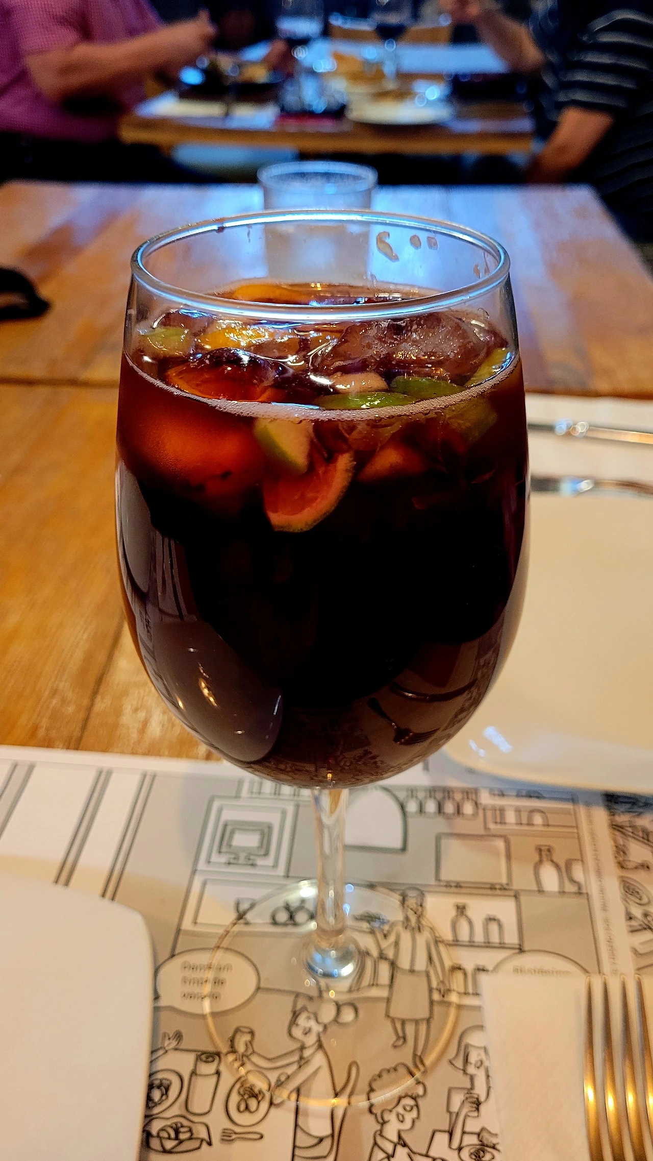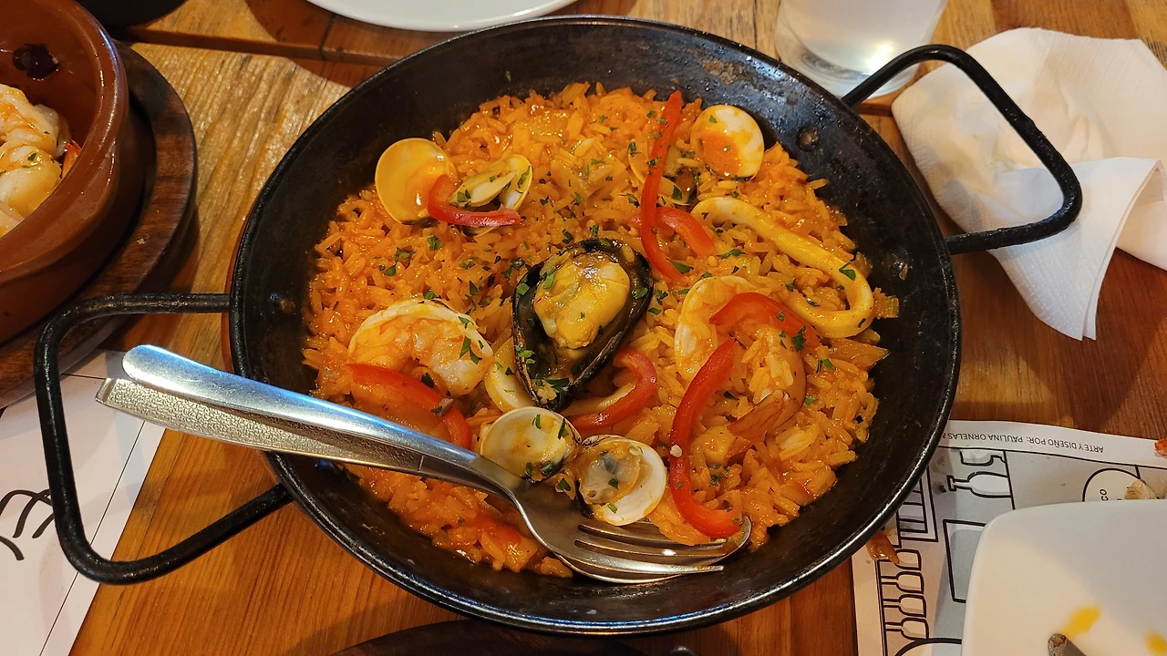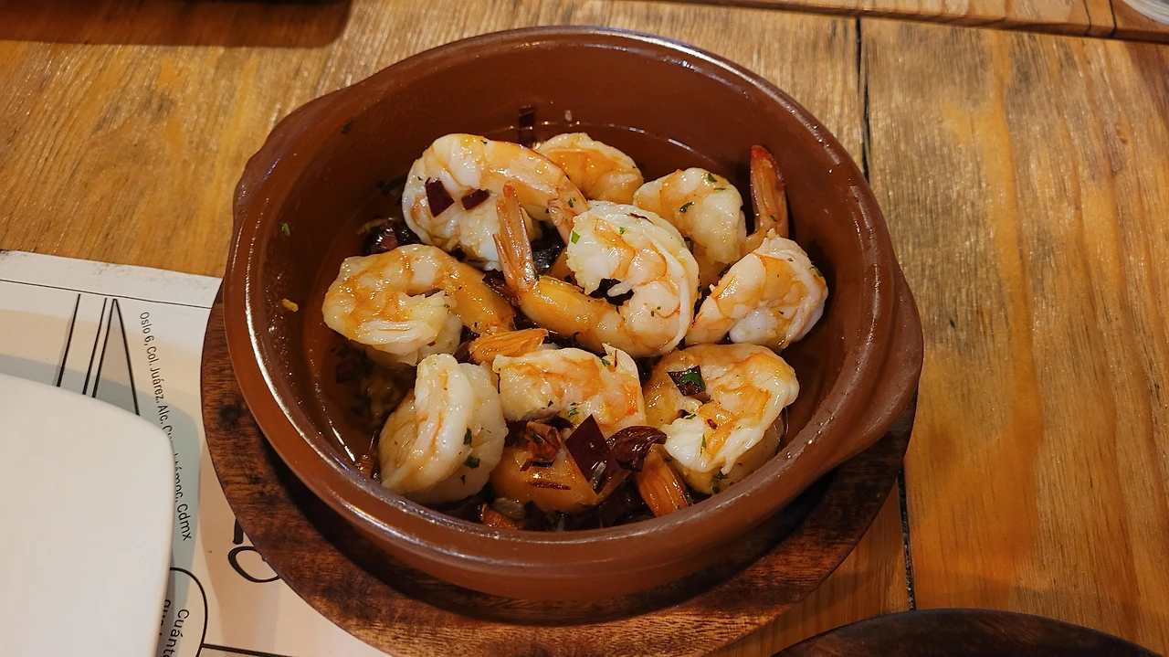 저녁이 되자 배가 고파졌다. 매 끼니 타코만 먹다 보니, 오늘은 다른 선택을 하고 싶었다. 처음에는 중국 음식을 떠올렸지만, 결국 스페인 음식으로 방향을 틀어 시내의 스페인 레스토랑으로 갔다. 아내는 멕시코 맥주를 마시고, 나는 상그릴라를 마시며 스페인의 좋은 기억을 불러 냈다. 음식은 훌륭했고, 서비스도 정갈했다. 다만 물가는 우리나라와 크게 다르지 않아 세금과 팁까지 붙으니 꽤 좋은 레스토랑 수준의 금액이 나왔다. 하지만 오늘은 멕시코에서 가장 뜻깊은 하루였기에, 파티하는 기분으로 계산서를 받아 들었다.