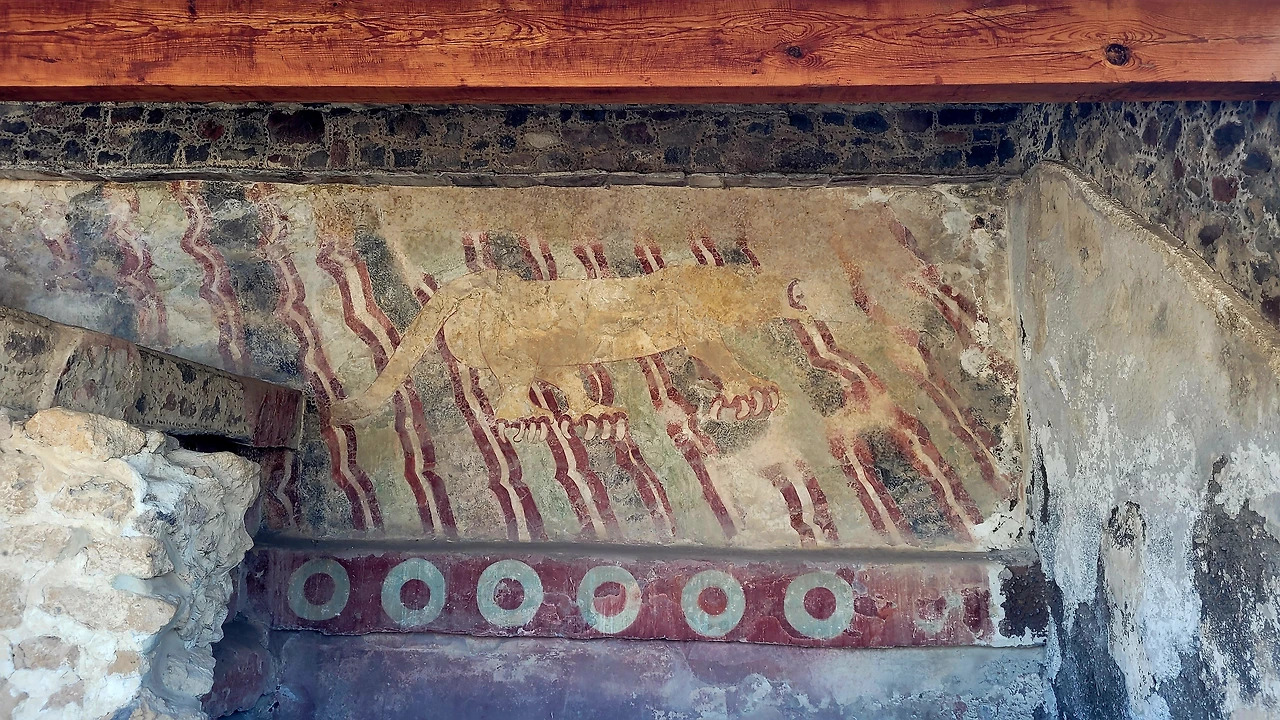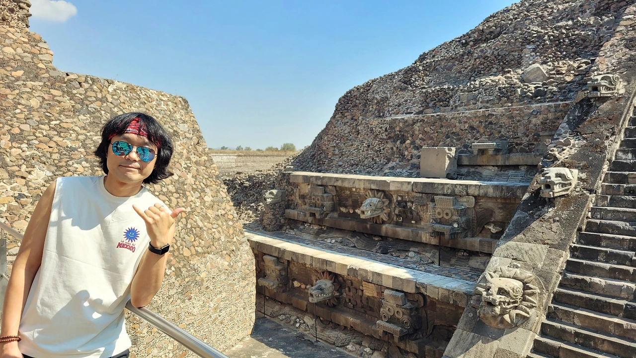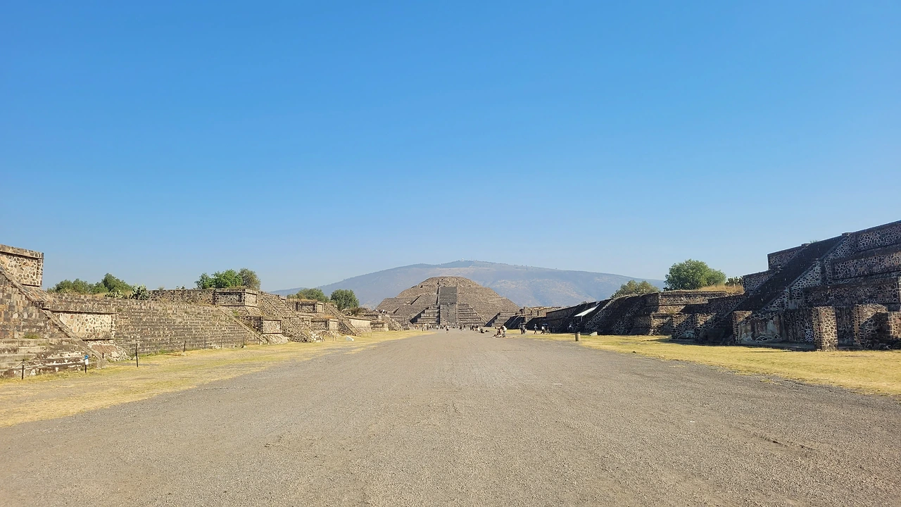 유적지를 직접 걷기 시작하자, 설명으로만 알던 공간이 현실이 되었다. 겨울이라는 말이 무색할 정도로 날씨는 더웠다. 다행히 바람이 텁텁하지 않아 숨쉬기는 한결 나았다. 태양의 피라미드는 사진으로 보던 것보다 훨씬 위압적이었다. 돌계단 하나하나에 쌓인 시간의 무게가 느껴졌다. 죽은 자의 거리를 따라 걸으며, 이 길을 수천 년 전 사람들도 같은 방향으로 걸었을지 상상해 보았다.