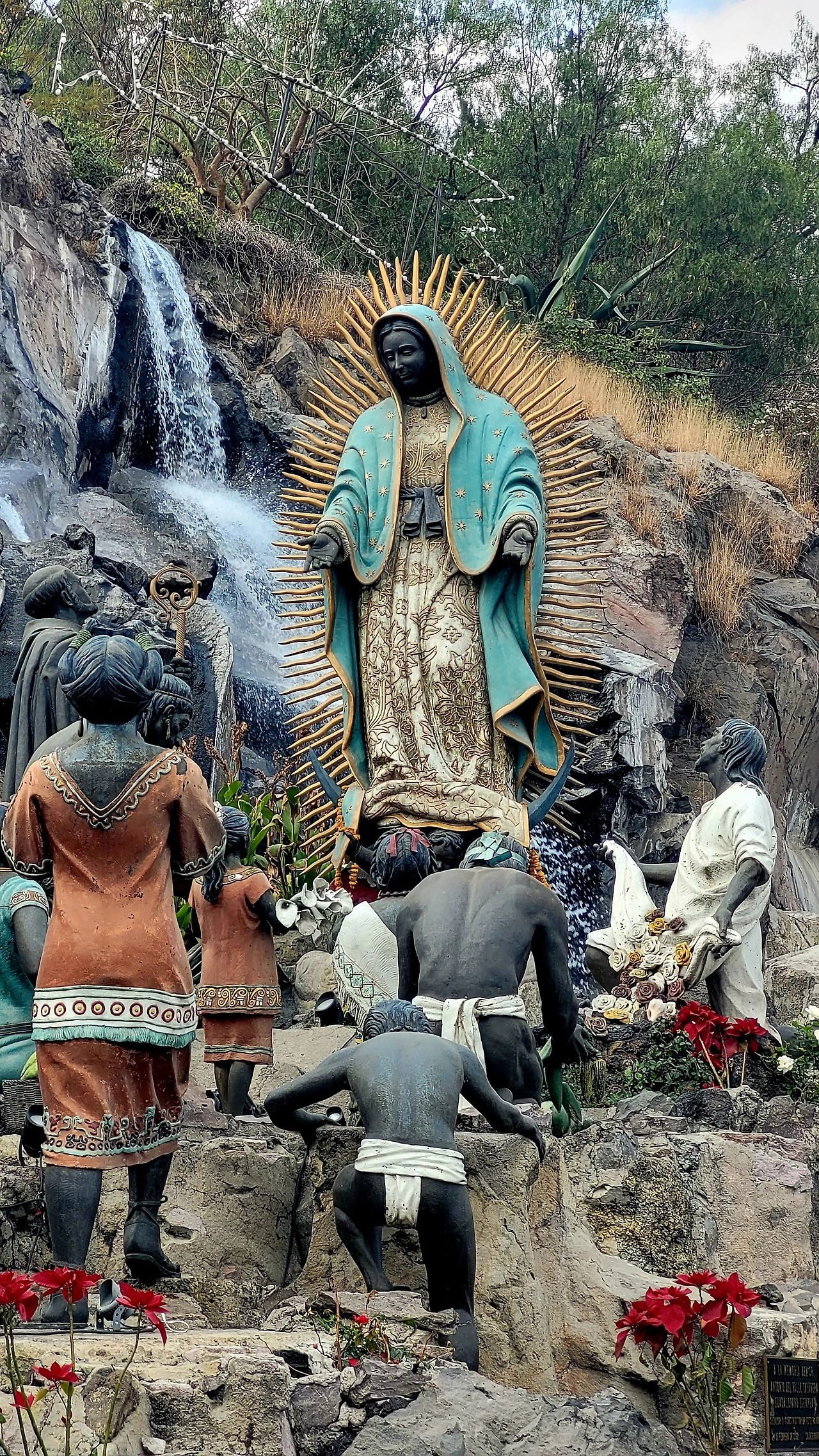 사그라도 테페약 정원(Jardín del Sagrado Recinto del Tepeyac la villa)은 성지의 숨을 고르는 공간이었다. 잘 정돈된 정원과 산책로를 따라 걷다 보니, 하루 종일 쌓였던 피로가 조금씩 풀리는 느낌이었다. 실물 크기로 제작된 원주민들과 성모상이 눈길을 끌었다.