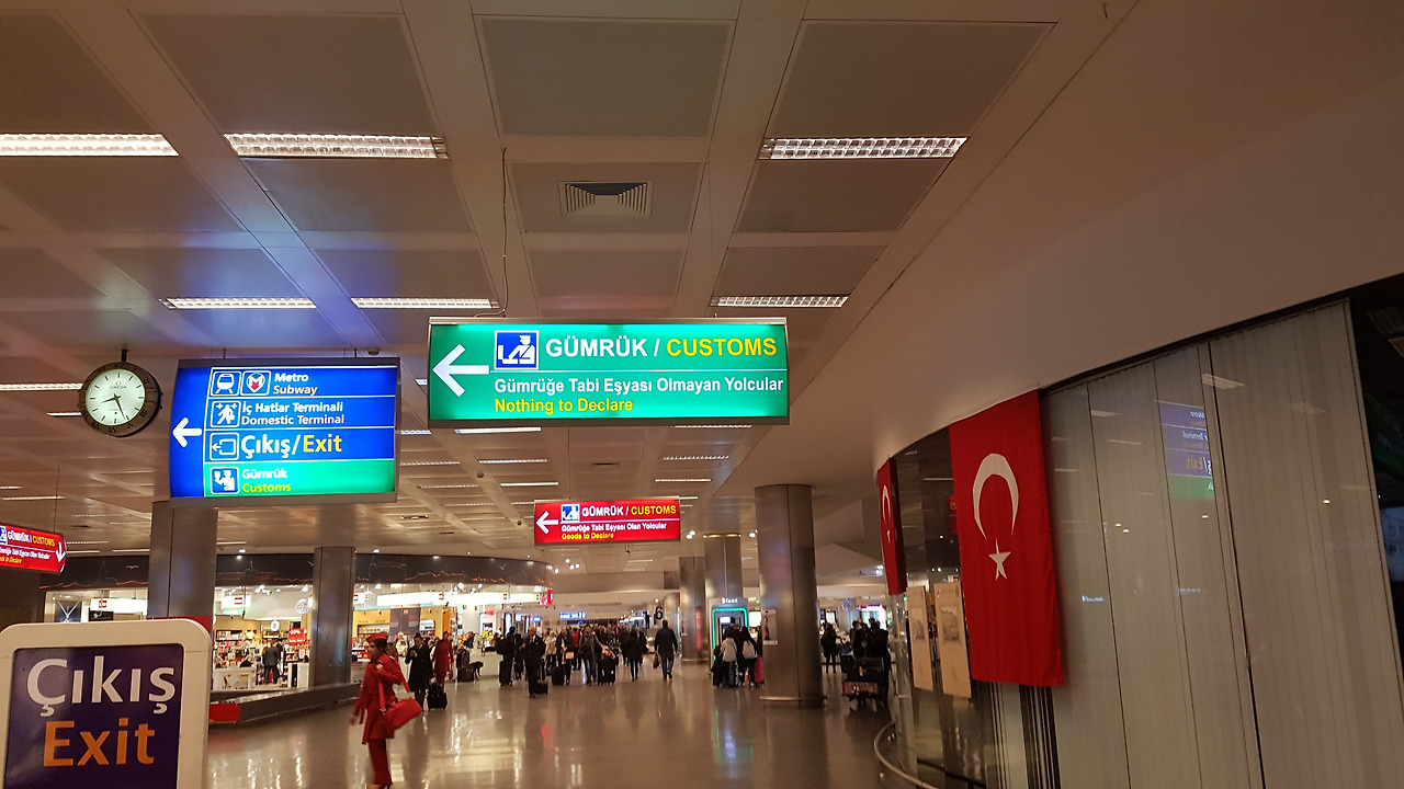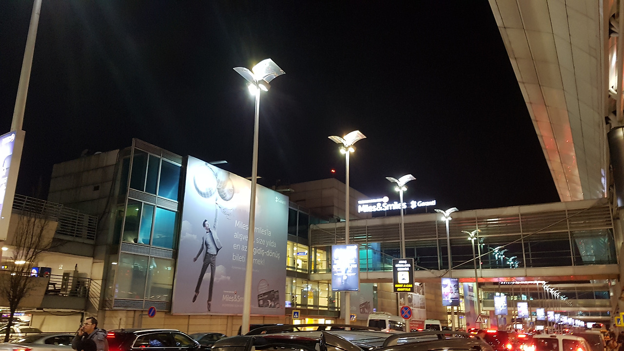 시차 때문인지 저녁 8시 15분에 이스탄불 아타튀르크 공항에 도착했다. 한국은 이미 밤 12시가 넘은 상황에서 12시간의 비행을 마치고 도착한 터키는 입국 수속부터 이색적인 모습을 물씬 풍겼다. 우리와 생김새도 다른 사람들이 가득 있었고 글씨, 언어, 공기 모두 색달랐다. 새로운 곳을 접할 때 느끼는 첫인상은 나에게 있어서 글자인데 영어 알파벳으로 적히긴 했지만 다른 언어를 보고 터키에 왔음을 실감했다. 많은 사람들이 이스탄불에 들어가기 위해 대기 중이라 1시간을 훌쩍 넘기고서야 겨우 이스탄불에 발을 내딛을 수 있었다. 공항 밖으로 나오니 미리 예약해놓은 택시가 기다리고 있었다. 그 택시를 타고 이스탄불의 밤거리를 가로질렀다. 가로등과 자동차 불빛이 우리를 지나치면서 머나먼 동방에서 온 이방인을 환영해주었다. 이 사람들도 서양, 고대 그리스인들에게는 동방이었는데 우리는 이들에게 동방에서 온 사람들이었다. 30분 넘게 도로를 달려 도착한 이스탄불의 숙소는 호텔이 아닌 일반 집이었다. 이 또한 매우 색다른 경험이었다.