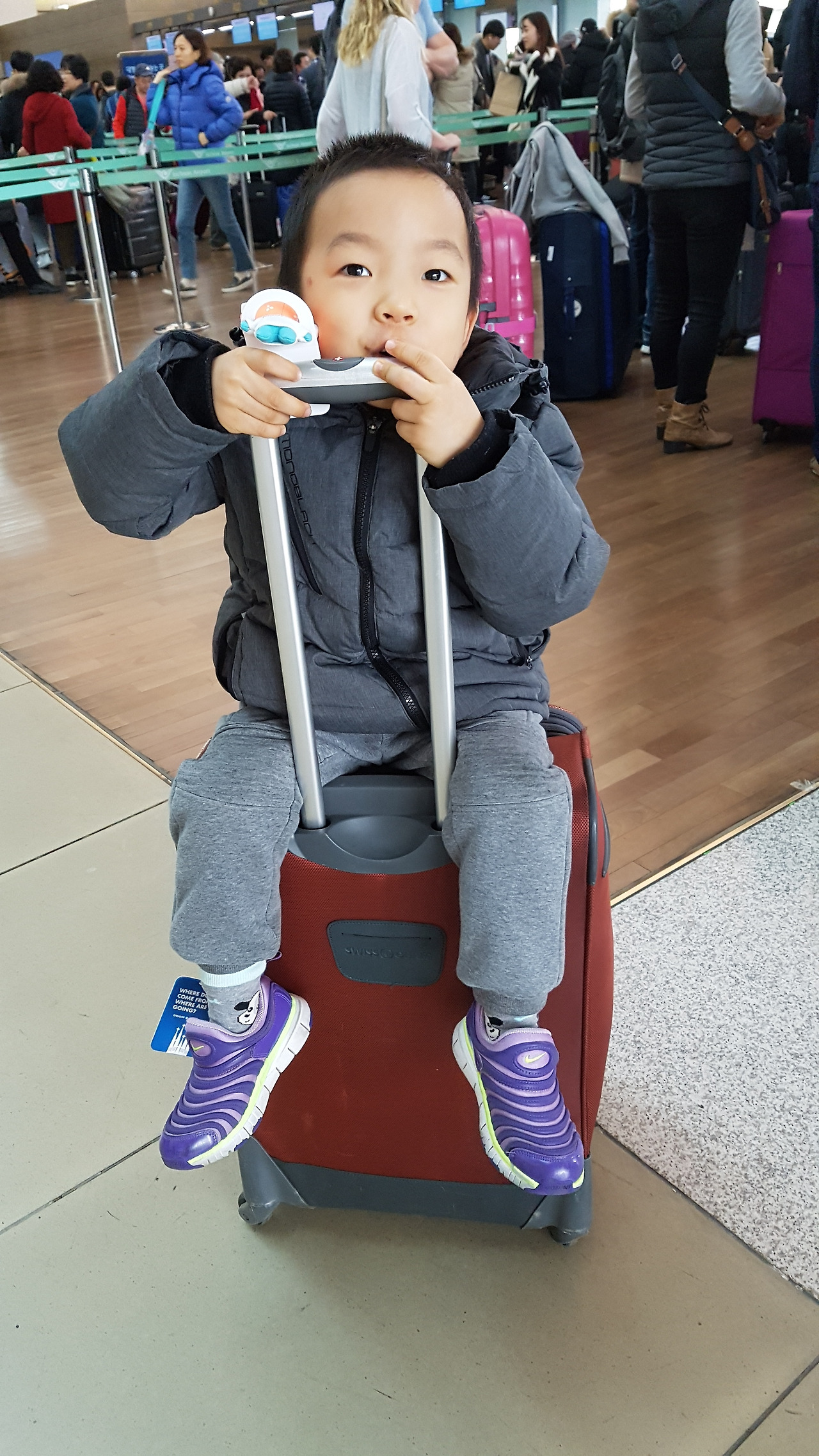 1월 7일 오후 2시 15분 비행기였는데 3시간 전에 공항에 도착하기 위해 우리 가족은 아침 7시 20분에 공항 가는 리무진 버스에 몸을 실었다. 아침 햇살을 가르고 버스는 인천 국제공항에 도착했다. 탑승 수속을 마친 다음에 오후 2시 15분이 되자 이스탄불을 향해 비행기는 이륙했다. 11시간이 넘는 비행시간을 어떻게 견뎌야 할지 걱정이 앞섰다. 비행기 안에서 아이는 처음으로 화면이 있는 좌석에 앉아보았다. 승무원께서 아이에게 작은 선물도 주고, 헤드폰도 챙겨주셔서 아이는 신나는 마음으로 여행을 시작했다. 아직 우리가 어디 가는지도 확실히 모르고 그저 비행기 타고 어디 멀리 간다는 것만 인지했다. 그리고 어린이집을 안 간다는 사실에 기뻐하기도 했다. 아이는 자기 자리에 앉아서 고사리 같은 손으로 컨트롤러를 만지작 거리며 만화 영화를 보기고 하고 게임을 하기도 했다. 게임이야 조작을 못하니 그저 움직이는 것만으로도 신기해하고 좋아했다. 그러다가 기내식이 나오면 먹고 또 놀다가 잠을 자기도 하고 그랬다. 아이보다 적응을 못한 것은 어른들이었다. 나와 아내는 이렇게 장거리가 처음이었다. 어머니는 친구분들 모임에서 유럽을 다녀오신 적이 있기에 나름 적응하셨지만 그래서 긴 비행시간은 견디기 힘들었다. 좌석에 앉아서 영화를 보았다가 다리가 붓는 것 같아서 일어나 통로를 왔다 갔다 하기도 하고 잠시 잠을 청해 보기도 하면서 시간을 견뎠다. 하지만 왜 이리 시간이 안 가는 건지 기내식 2번과 간식을 먹고 잠을 뒤척이고 이리저리 헤매다가 겨우 도착했다. 아이는 세상모르고 쌕쌕 자다가 일어났다.