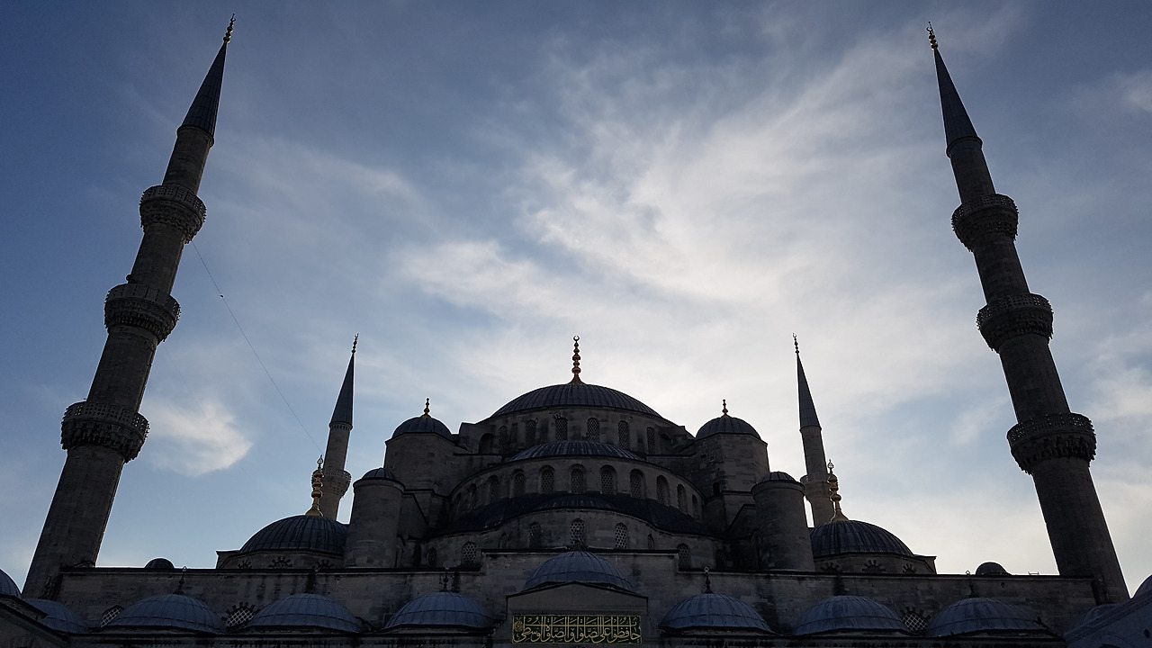 하기아 소피아에서 나와 인근에 있는 블루 모스크로 걸어갔다. 티끌 하나 없는 하늘과 공기에 마음껏 숨 쉬고 달릴 수 있는 거리였다. 아침에 내렸던 비로 촉촉한 돌이 깔린 거리를 두 발로 걷는 기분은 참 좋았다. 가는 길에 빵을 파는 간이 수레가 있어서 아이가 먹고 싶어 해 샀다. 첫 해외여행 때는 이국적인 음식이 있어도 먹어보질 못했는데 이제는 음식을 맛볼 수 있어서 이렇게 우리나라에 없는 음식을 함께 즐길 수 있었다. 블루 모스크는 술탄 아흐메드 모스크로 이스탄불을 넘어 이슬람 국가인 터키를 대표하는 모스크이다. 겉으로 봐도 푸른색이고 내부도 푸른 타일로 장식되어 있어서 블루 모스크라는 이름으로 잘 알려졌다. 오스만 제국의 술탄이었던 아흐메드 1세가 17세기 초에 완성한 모스크인데 맞은편에 있는 하기아 소피아에 대항하기 위해 거대하게 만들었다는 말이 있다. 두 곳을 가본 나로서 개인적으로 든 생각은 각자의 매력이 있고 색깔이 있기에 비교보다는 같은 신을 다른 모습으로 모시려고 했다는 점이 색다르게 느껴졌다. 안으로 들어가려니 아내와 어머니는 머리를 두건으로 가려야 한다 해서 목도리를 돌돌 말아 얼굴을 감쌌다. 이슬람 국가의 모습을 볼 수 있는 장면이었다. 안에는 이슬람 사원답게 별다른 것이 없었다. 넓은 회랑에 서서 올려다보니 둥근 천장이 화려한 무늬를 뽐내며 빛나고 있었다.
