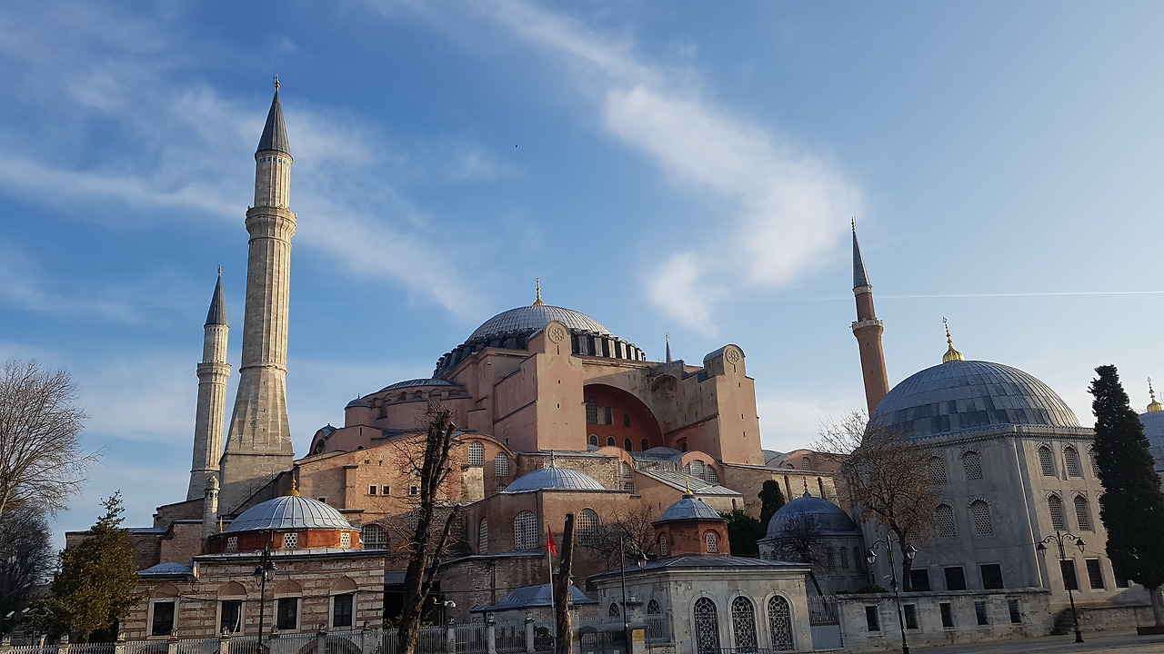 이스탄불은 과거 다들 알다시피 비잔티움으로 불리다가 서기 330년 로마제국의 콘스탄티누스 대제가 수도로 삼으면서 콘스탄티노플이 되었다. 그리고 서로마제국이 멸망하고 로마의 적자로서 이어받은 도시가 바로 이 도시였다. 크리스트교와 그리스 로마 문명의 최선봉이자 로마를 대신해 정점에 섰던 도시는 서양문명을 상징하는 도시로서 난공불락을 자랑했지만 1453년 술탄 메메트 2세에게 점령당하면서 오스만 제국의 수도가 되었다. 오스만 제국이 해체당하고 터키가 된 다음 수도의 지위를 잃었지만 그 중심 도시로서 수많은 유적지가 산재하고 있다. 그중에 순위를 정한다면 1위를 다투는 유적이 바로 하기아 소피아(아야 소피아)이다. 이 건물은 그리스 정교회를 대표하는 성당으로 537년 유스티니아누스 황제에 의해 지어진 돔 형식의 완벽한 모습을 구현하고 있었다. 예전 이 건물이 어떻게 지어졌는지를 다룬 다큐를 본 적이 있는데 지금도 어려운 거대한 천장의 돔을 구현한 모습을 보니 당시 이 모습을 본 유스티니아누스 황제가 외친 말이 이해가 갔다. 그때 그는 솔로몬을 이겼다며 감격에 부르짖었다고 한다. 후에 오스만 제국에게 정복당해 4개의 첨탑이 세워지고 모자이크 벽화도 회칠로 없어졌으나 지금은 복원 작업이 이루어지고 있어서 사람들에게 박물관으로서의 역할을 톡톡히 하고 있다. 미리 표를 사둔 덕분에 편리하게 입장할 수 있었다.