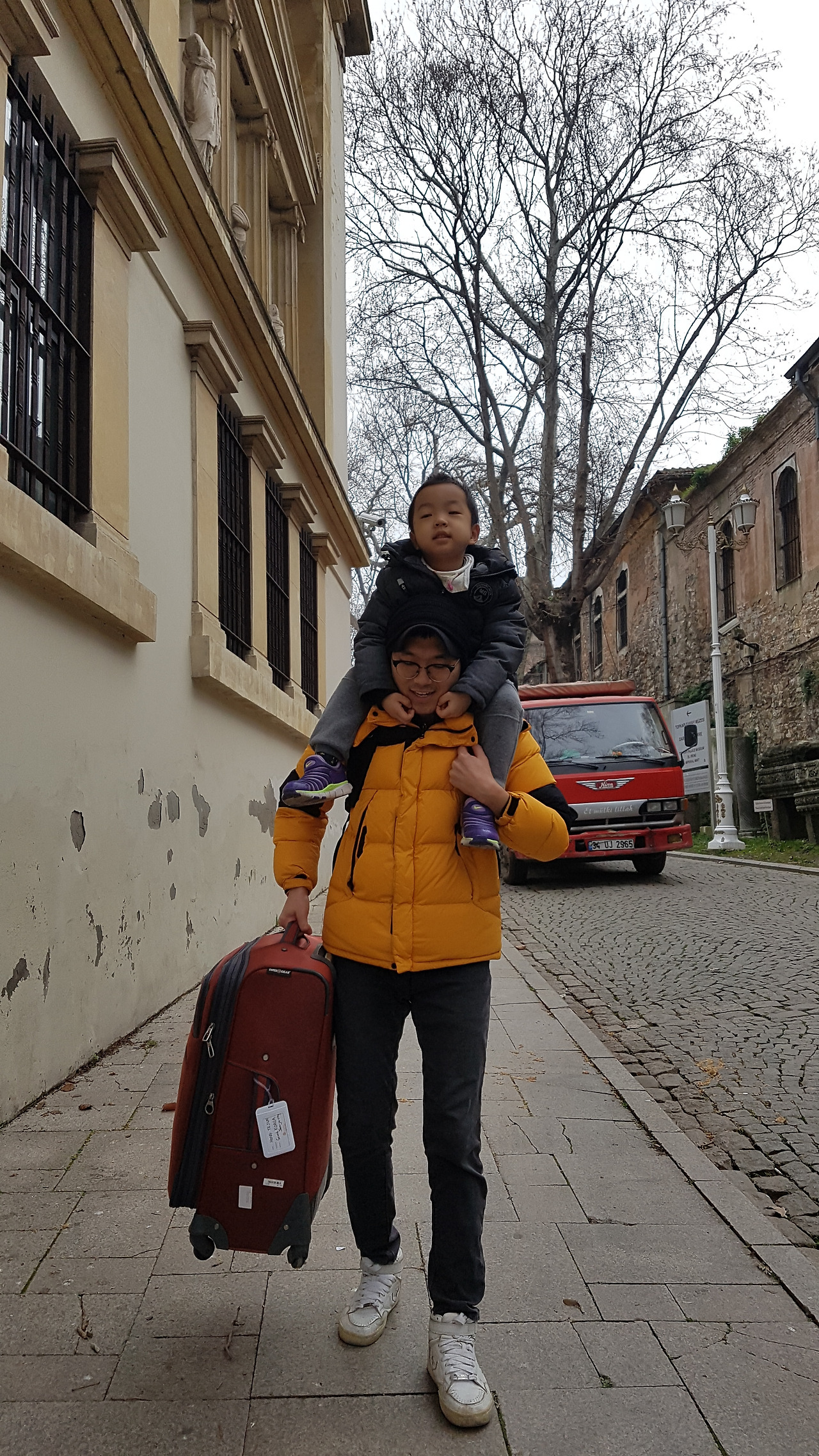 날은 다소 흐렸지만 적당한 겨울 날씨에 다들 마음은 포근했다. 아이만 빼고 말이다. 겨울이기 때문에 옷을 따뜻하게 입히고자 검은색 패딩 바지를 아침에 입히려고 했는데 안 입겠다고 계속 투정을 부렸다. 옷이 이상한 것도 아니고 재질이 안 좋은 것도 아닌데 고집을 피우면서 안 입으려고 하니 나도 그러면 안아주기와 목마 태우기를 오늘은 안 해주겠다고 선언했다. 그래서 아이도 그것을 받아들이고 조금 두꺼운 면바지를 입었다. 이러한 대화가 오고 간다는 것이 신기할 따름이다. 그래서 박물관까지 가는 내내 묵묵히 간혹 뛰기도 하고 잘 걸어 다녔다. 그리고 첫 목적지인 고고학 박물관 안으로 들어왔다. 이스탄불에서 꼭 가봐야 하는 박물관이라면 이 고고학 박물관이다.