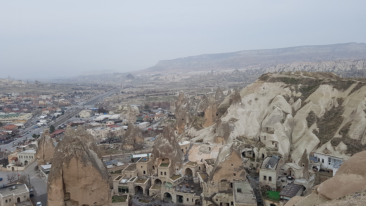 아이도 미로 찾기처럼 얽히고설킨 공간을 돌아다니며 좋아했다. 특히 흙길을 걷거나 꽃, 풀, 나무 등을 보는 걸 좋아했기에 이 트래킹은 즐거워하면서 잘 걸어 다녔다. 그랜드캐년과는 다르게 천 년이 훌쩍 넘는 시간부터 인간의 손길이 곳곳에 닿아 남겨진 모습, 자연 그대로의 풍경을 보고 있으니 사진을 얼마나 찍었는지 모르겠다. 내려오는 길에 아이가 사 준 초콜릿 과자가 없어졌다고 해서 나와 아내, 어머니는 찾았는데 알고 보니 아이가 내 패딩 모자에 숨겨놓고 거짓말을 한 것이다. 이렇게 장난을 친 것은 처음이었기에 다들 놀라며 웃었다. 그렇게 한참을 걷고 보고 난 후 저녁시간이 되어 괴레메 시내에 있는 식당에서 저녁을 먹기로 했다. 언제나 양고기는 시키고 피데도 주문했다. 그리고 별미인 항아리 카레도 주문했는데 활활 타는 불 위에 작은 항아리 옹기가 있었고 열어보니 카레가 끓고 있었다. 다들 맛있게 식사를 한 후 떠나는 게 아쉬워 괴레메 시내를 조망할 수 있는 근처 언덕에 올라서 이곳 풍경을 오랫동안 눈에 담았다.