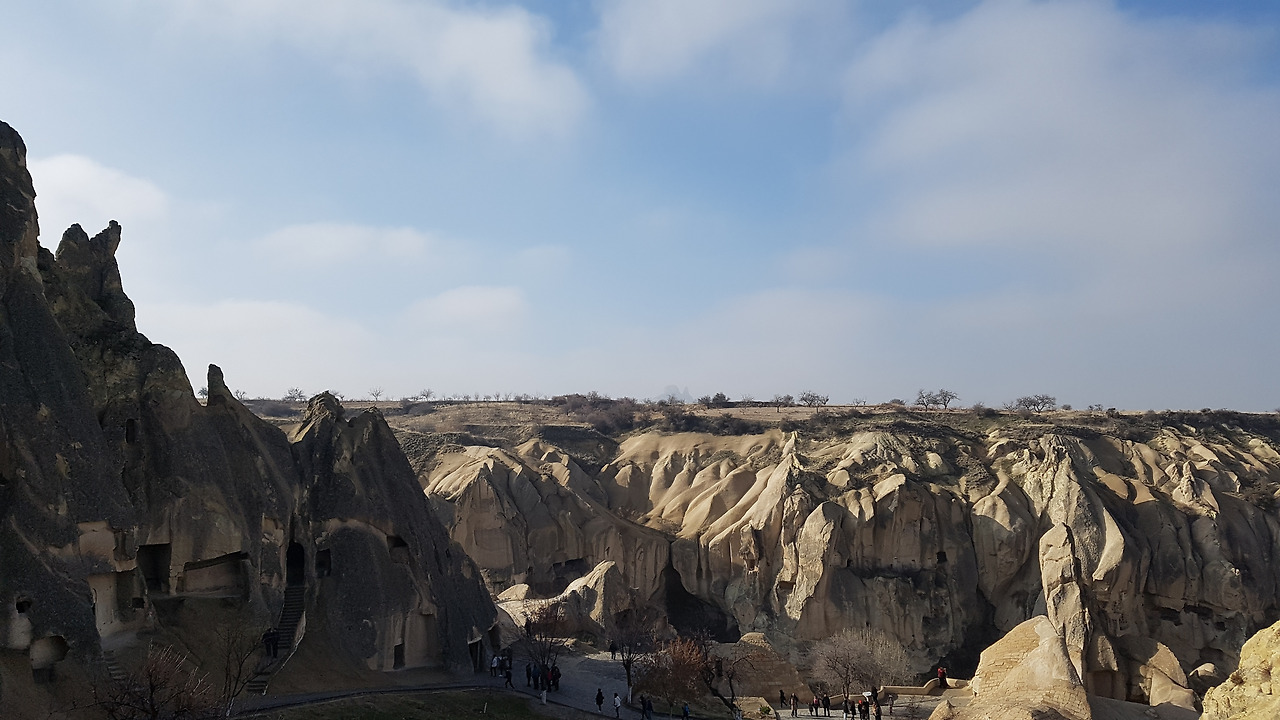 몇 분 걸어가니 카파도키아가 나왔다. 직접 눈으로 본 그 거대하고 장엄하면서 표현하기 힘든 풍경은 사진으로 아무리 찍어도 그 느낌이 살아나지 않았다. 단순히 자연물로만 남긴 것이 아니라 그 안에 사람들이 살았었고 인간의 역사가 있었기에 감동은 배가 되었다. 안에 들어가면 방, 부엌, 기도실, 교회 등 형태가 아직까지 남아있었다. 각종 벽화들은 물론이고 요리를 해서 그을음이 일어난 곳도 있었다. 기암괴석을 구성하는 응회암은 화산재가 굳어진 것이기에 날카로운 도구를 가지면 충분히 굴을 팔 수 있다고 한다. 그래서 로마의 박해를 피해 온 크리스트교인들이 처음에 살면서 교회, 납골당, 부엌, 집무실, 성채 등을 만들게 되었고 인류의 자연유산이자 문화유산으로 지금까지 남아있게 된 것이다. 잠깐 휴게소에서 어른들은 터키 커피, 아이는 초콜릿으로 충전을 하고 세계문화유산 구역 외에도 엄청 크기 때문에 우린 발길 닿는 대로 걸어보기로 했다. 숨겨진 공간을 찾는 것도 재미가 있었다.