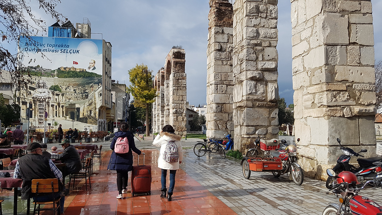 셀축은 터키 이즈미르 주에 있는 작은 도시로 인구는 4만 명을 밑도는 수준이다. 우리나라로 치면 군 단위 읍내라고 생각하면 된다. 이런 작은 도시가 유명한 이유는 에페소스가 인접해있어서이다. 셀축이라는 도시 이름은 서아시아 역사에 등장하는 셀주크 투르크에서 유래한 것이라고 한다. 이즈미르에서는 세차게 내리던 비가 셀축에 왔을 때는 맑게 개어 선명하고 푸른 하늘을 보이고 있었다. 캐리어와 짐에다가 아이까지 있어서 우산 쓰고 가는 게 부담스러웠던 우리에겐 출발이 좋았다. 단정하고 정갈해 보이는 셀축 거리를 지나서 숙소에 도착했다. 숙소는 이층 집 게스트하우스였는데 아담하니 묵기에 좋아 보였다. 인상이 푸근한 주인 할아버지와 할머니가 우릴 반갑게 맞이해주셨다. 이층으로 올라가 방을 안내받았는데 커다란 침대, 작은 침대 1개씩 있고 샤워시설이 있었다. TV나 다른 전자기기가 없고 단정한 방 안과 전통 문양이 있는 창문을 보니 마음이 편해졌다. 일단 짐을 풀고 나와 주인 내외분께 에페소스에 가고 싶은 데 가는 방법을 물어보니 주인 할아버지께서 흔쾌히 에페소스까지 태워주시겠다고 했다. 덕분에 편하게 에페소스까지 갈 수 있었다. 에페소스는 셀축에서 2km 정도 떨어진 가까운 거리에 있었다. 성경에 등장하는 그 도시에 오게 되니 어머니와 아내는 약간 감동을 했다. 이 곳은 한국에서 단체 관광으로 많이 오는 코스라고 해서 그런지 한국어 안내 책자도 있었다. 로마시대의 고대 도시를 온전히 보는 것은 처음이라 나 또한 굉장히 낯설면서 기대감에 부풀었다.