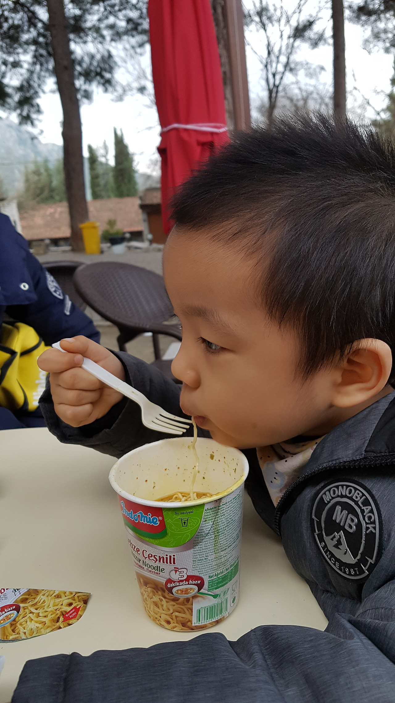 기념품 가게에 들어가니 컵라면을 파는 곳이 있어서 아이가 어쩔 수 없는 한국인인지 컵라면을 먹고 싶다고 해서 물을 받아 가게 앞 테이블에서 먹기 시작했다. 맵지 않아 맛있게 먹고 거의 다 먹었을 때쯤 갑자기 비가 내리기 시작했다. 그렇다고 안에 들어가서 먹을 수 없어서 급하게 버리고 나왔다. 바로 그칠 기미가 보이지 않았기에 우린 서둘러 택시를 잡아 셀축 시내로 들어왔다. 그런데 2km의 가까운 거리인데 다소 비싼 요금을 우리에게 요구했다. 아이가 있어서 비도 계속 내리니 지불하려 했는데 마침 그만한 액수의 지폐를 가지고 있지 않고 고액권을 가지고 있어서 근처 가게에서 바꿨다. 그런데 택시비 외에 고액권을 바꾸면서 택시기사가 그 돈으로 껌을 하나 샀는데 그것도 가져간 것이다. 그땐 몰랐는데 동전을 받고 확인하고 알았다. 액수보다는 뭔가 이런 일을 당했다는 게 화가 났다. 터키에 와서 사람들에 대한 좋은 기억만 가득했는데 뭔가 금이 간 듯해서 안타까웠다.