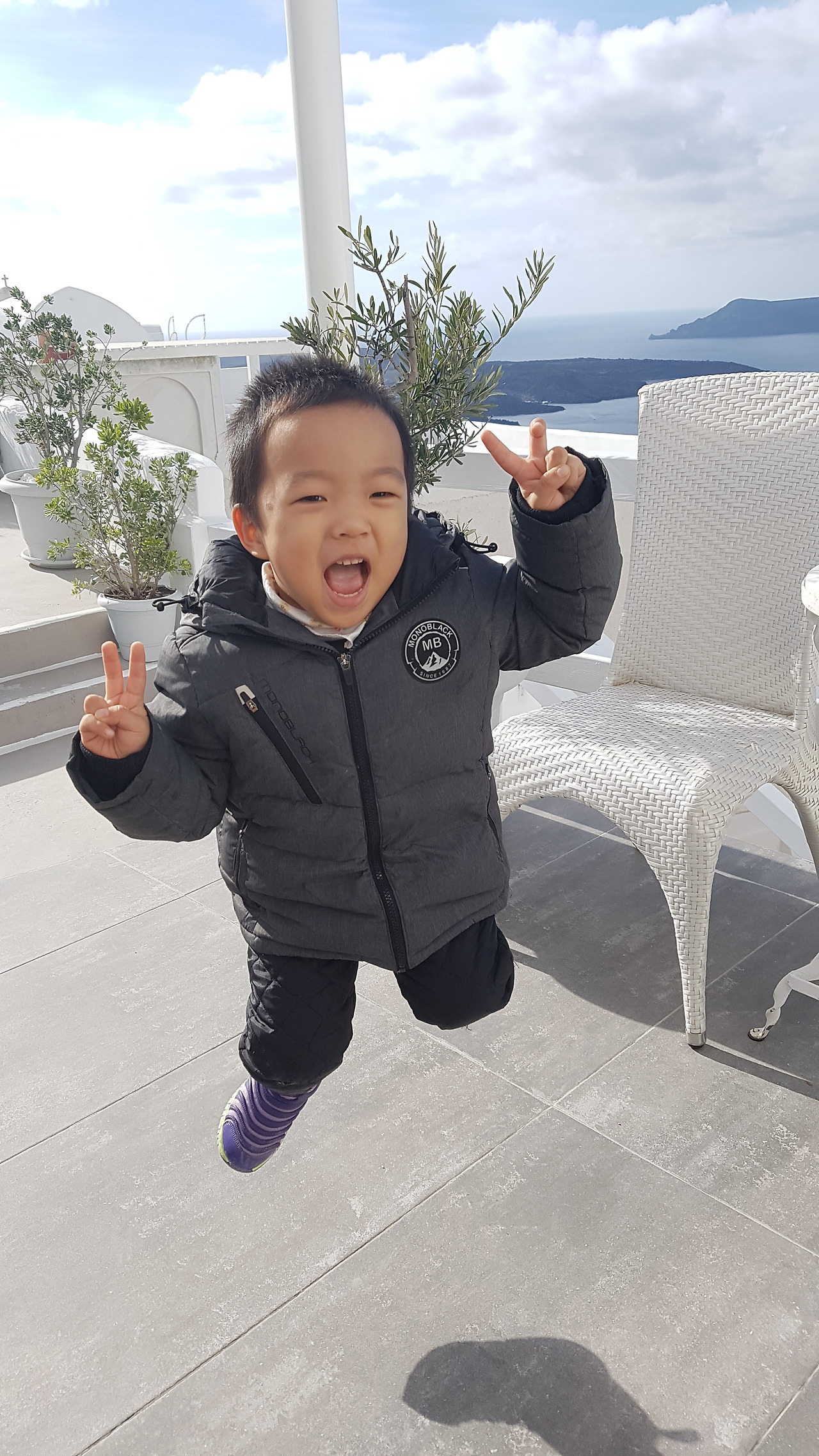 가격은 이아마을보다 비쌌지만 피라마을 호텔 역시 이아마을 호텔 못지않게 너무 좋았다. 실내는 이곳이 약간 더 넓었는데 테이블도 크게 있어서 조식 먹기에 불편함이 없었다. 어젯밤에 아이는 잠이 안 온다고 자꾸 내가 자는 침대에 와서 장난치고 놀다가 밤 12시가 다 되어 잠들었다. 오늘은 어제보다 살짝 흐려 보이는 날씨여서 어제 내내 티 없이 청량했던 날씨에 다시 한번 다들 감사했다. 조식은 호텔에서 방으로 가져주었는데 어른 3명과 아이 1명이 먹기에 넘치는 양이었다. 다들 배불리 먹고 호텔 테라스로 올라가 마지막으로 짙고 푸른 바다와 하늘을 가로지르는 수평선, 그에 맞춰진 하얗다 못해 눈부신 절벽의 집들을 바라보았다. 그렇게 마지막 감상을 하고 짐을 챙겨 호텔을 나왔다.
