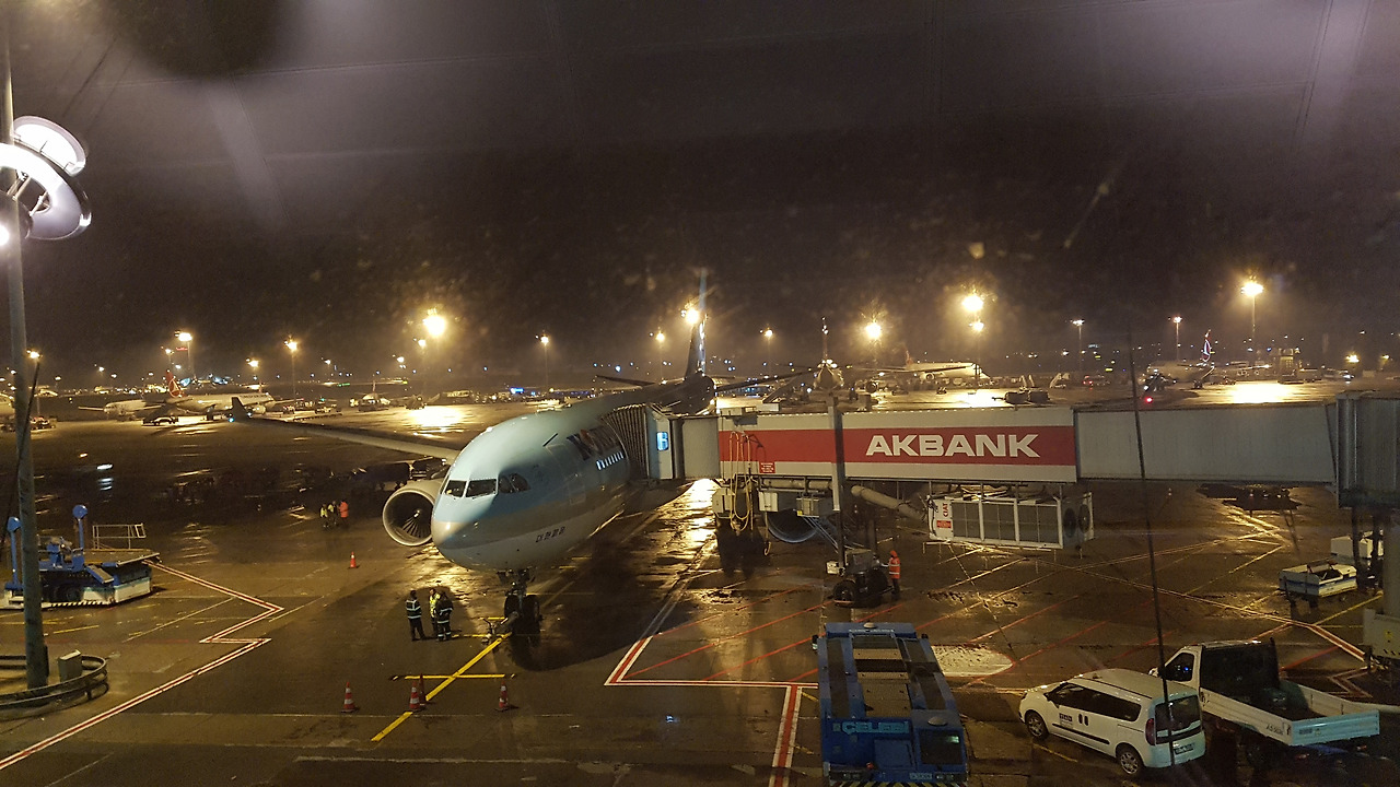 1시간 30분을 비행해 이스탄불에 도착했고, 다시 1시간 정도 입국 수속을 밟아 공항 안으로 들어올 수 있었다. 아직 출국 수속이 안 열려 카페에서 앉아 기다렸다. 아이가 자고 있어 한 시간 넘게 안고 있었더니 어깨와 눈꺼풀이 무거웠다. 터키에 바로 입국해서 2시간 있다가 출국하는 것이 괜찮을까 싶었는데 아무 문제없이 통과되었다. 1시간 비행기 지연으로 인해 일단 출국 수속을 밟고 안에 들어가 저녁 식사를 했다. 면세점에서 여행 기간 내내 아프지 않고 잘 다녀 준 아이에게 고마움으로 작은 레고 블록을 사줬다. 연착되어 밤 10시 45분에 대한민국으로 가는 비행기를 타고 또 12시간의 비행을 했다. 아이는 비행기 자리에 앉자마자 어린이 헤드셋을 달라고 한 다음 능숙하게 화면을 켜고 만화 시청을 했다. 그러다 졸길래 눕혔더니 짜증을 내서 안아주고 나와 아내, 어머니가 교대로 보면서 갔다. 그렇게 버티다시피 하며 무사히 인천 국제공항에 도착했다.