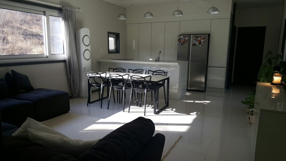 하얀색과 검정 계열만 주로 사용하였다. 색감에 자신 없어서 이렇게 했는데, 모던한 분위기가 괜찮다. 우리집 오시는 분들이 입만 웃으시는건 아닌 것 같다.