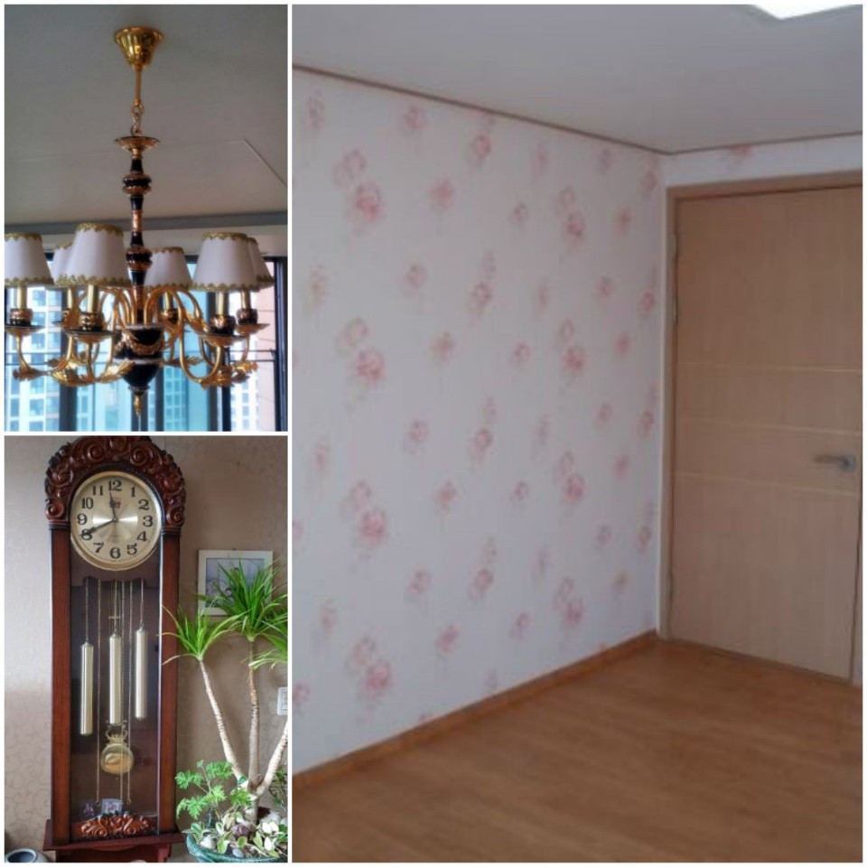 낮은 천장의 샹들리에, 괘종시계(자매품 : 부엉이 시계), 꽃무의 벽지와 노란색 바닥재다. 건축비는 오히려 더 들어간다.