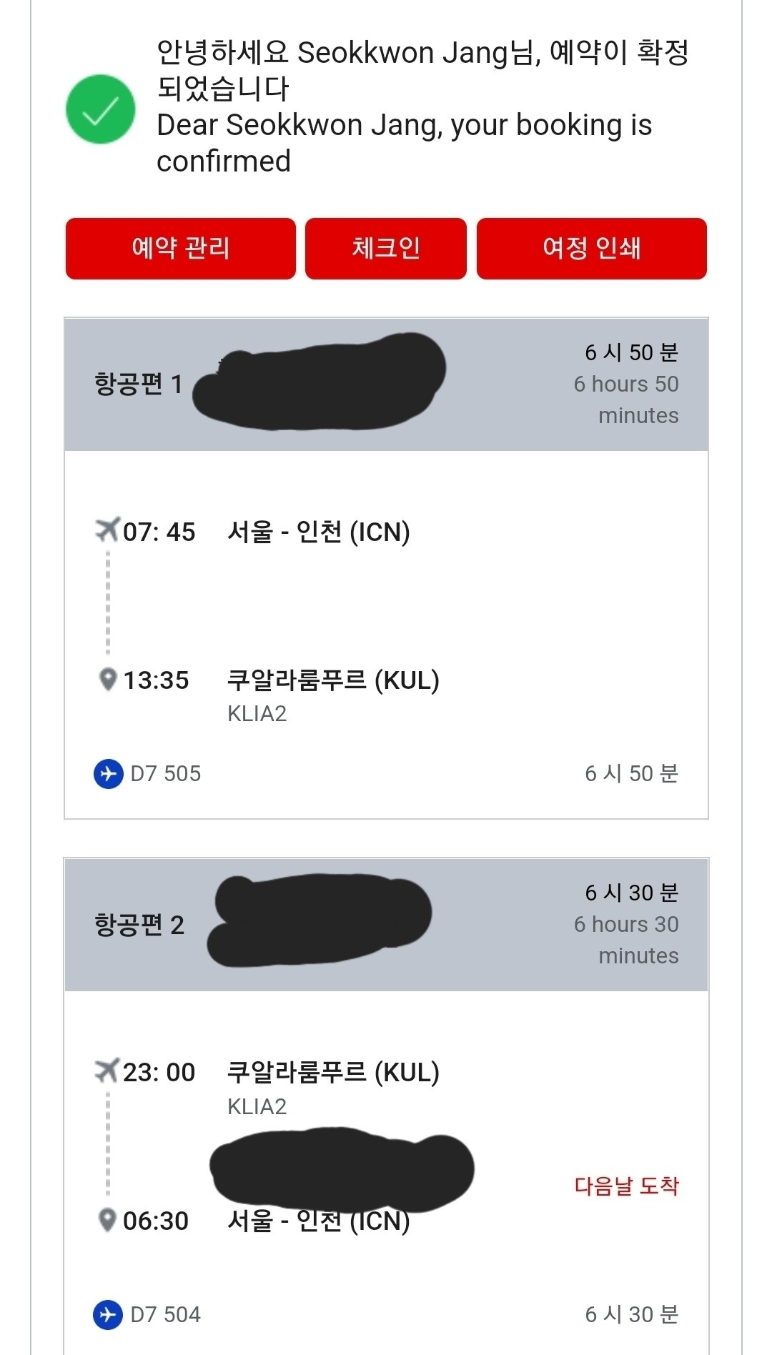어떨결에 우리는 한달 살기를 확정하였고, 항공권을 예약하였다. 대한항공 마일리지로 가려고 하였지만, 여러 추가 비용을 부담해야하는 상황에서 굳이 대한항공을 이용할 필요는 없었으며, 그마저도 예약할 수 있는 항공편이 많지 않아 실질적으로 마일리지 예약은 어려웠다. 우선 말레이시아 한달 살기를 계획했기 때문에 에어아시라 쿠알라룸푸르 항공권을 예매하였다. 페낭으로 결정했다면, 어차피 직항은 없으니까, 다구간으로 쿠알라룸푸르 경우 항공권을 예매하면 갈아타기 더 수월하다.