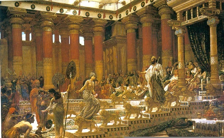 솔로몬은 왕이 되기 전 신께 단 한 가지를 구했다고 한다. 그것은 지혜였다. 이에 신은 돈이나 강력한 군대도 아닌 지혜를 구한 솔로몬에게 크게 기뻐하며 "네 앞에도 너와 같은 자가 없었고 네 뒤에도 너와 같은 자가 없으리라" 말했다. 솔로몬의 이스라엘에선 나라에 금이 차고 넘쳤으며 은이 돌멩이와 같았다. 성전을 건축하기 위해 줄지어 들어오는 레바논의 백향목은 그 행렬의 끝이 안보였을 것이다.
