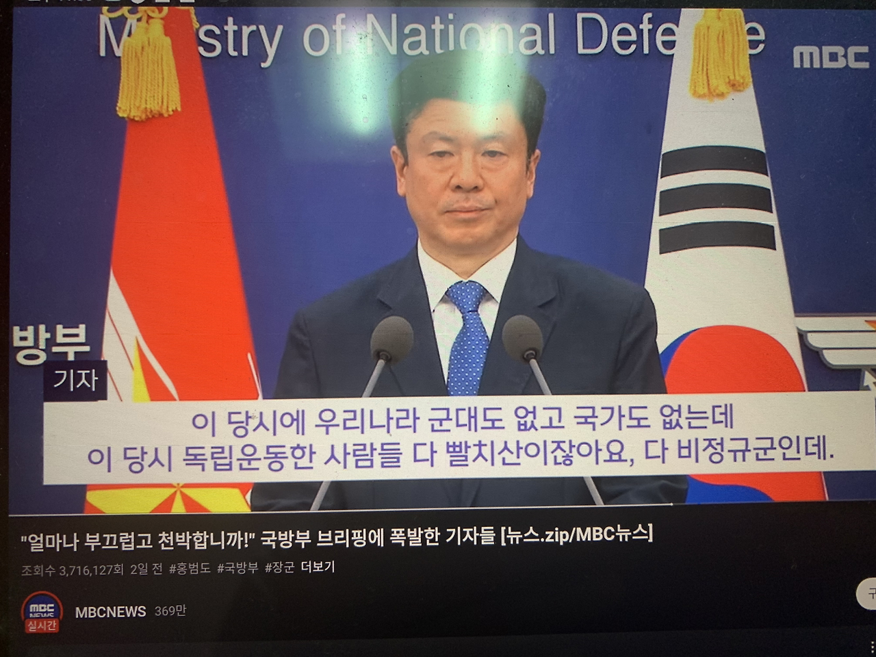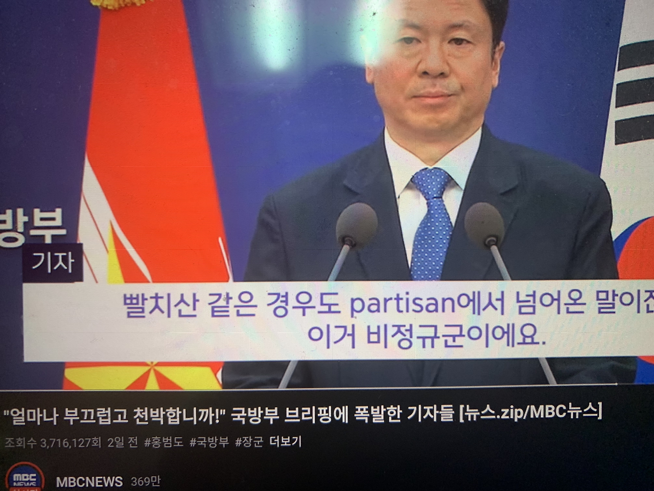 빨치산과 빨갱이를 구분 못하는 머저리들이 국방부 일을 하고 있어? 와 큰일이다 진짜.....