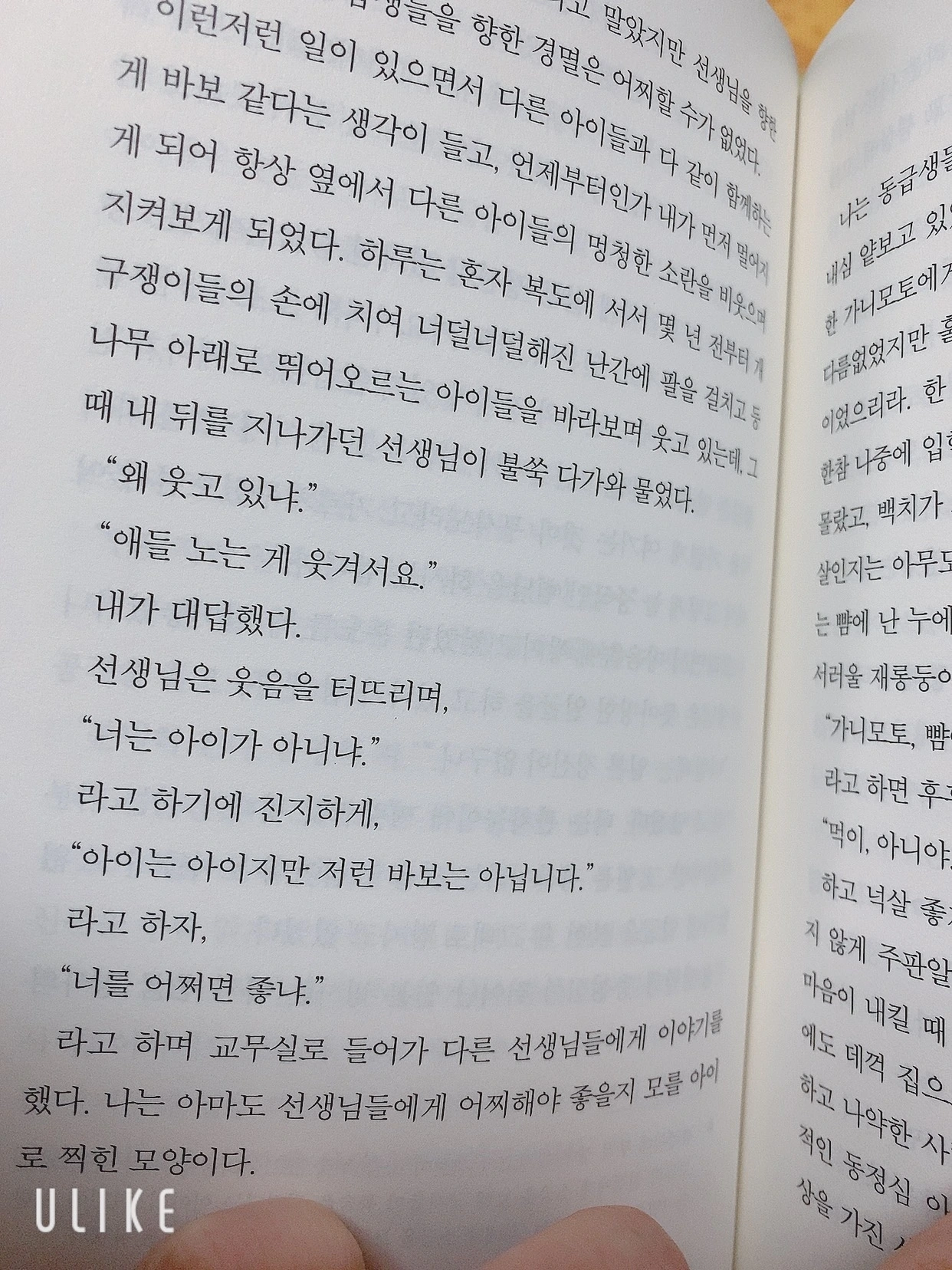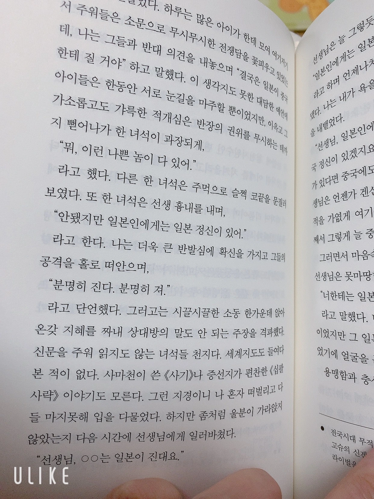 주인공이 청일전쟁에서 일본일 질 거라 주장하는데(그러니까 속으로만 전쟁에 반대한 게 아니었다), 이렇게 다수에게 당당히 혼자 맞서는 상황이 우리나라에서 벌어졌다면, 과연 저기 나오는 선생들처럼 “이상한 놈” 취급하는 선에서 끝났을까? 한국이었다면 돌팔매질 당해서 생명이 위태롭지 않았을까. 요약하자면 전체주의는 도처에 도사리고 있다. 주인공은 운이 좋았던 걸까. 소설이지만 만약 이게 실화라면, 이 소수자 무사할 수 있었을까.