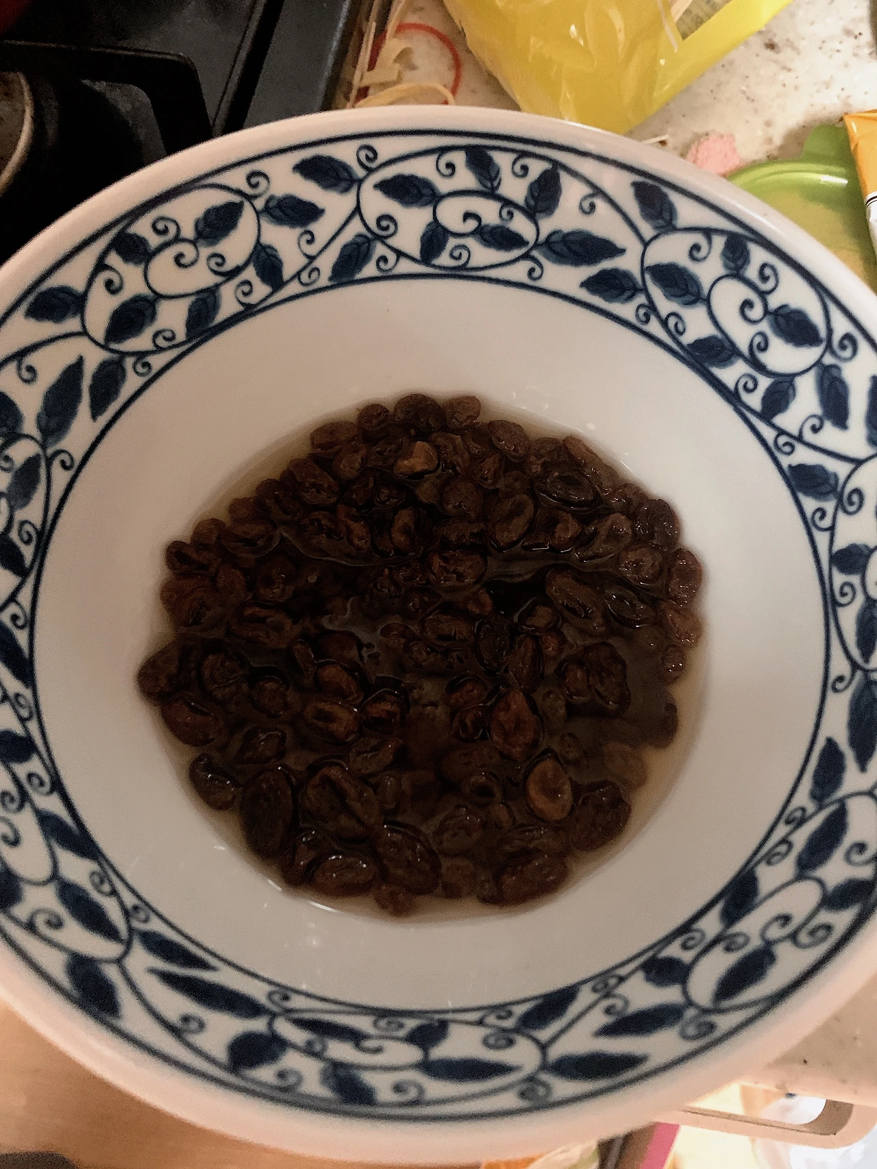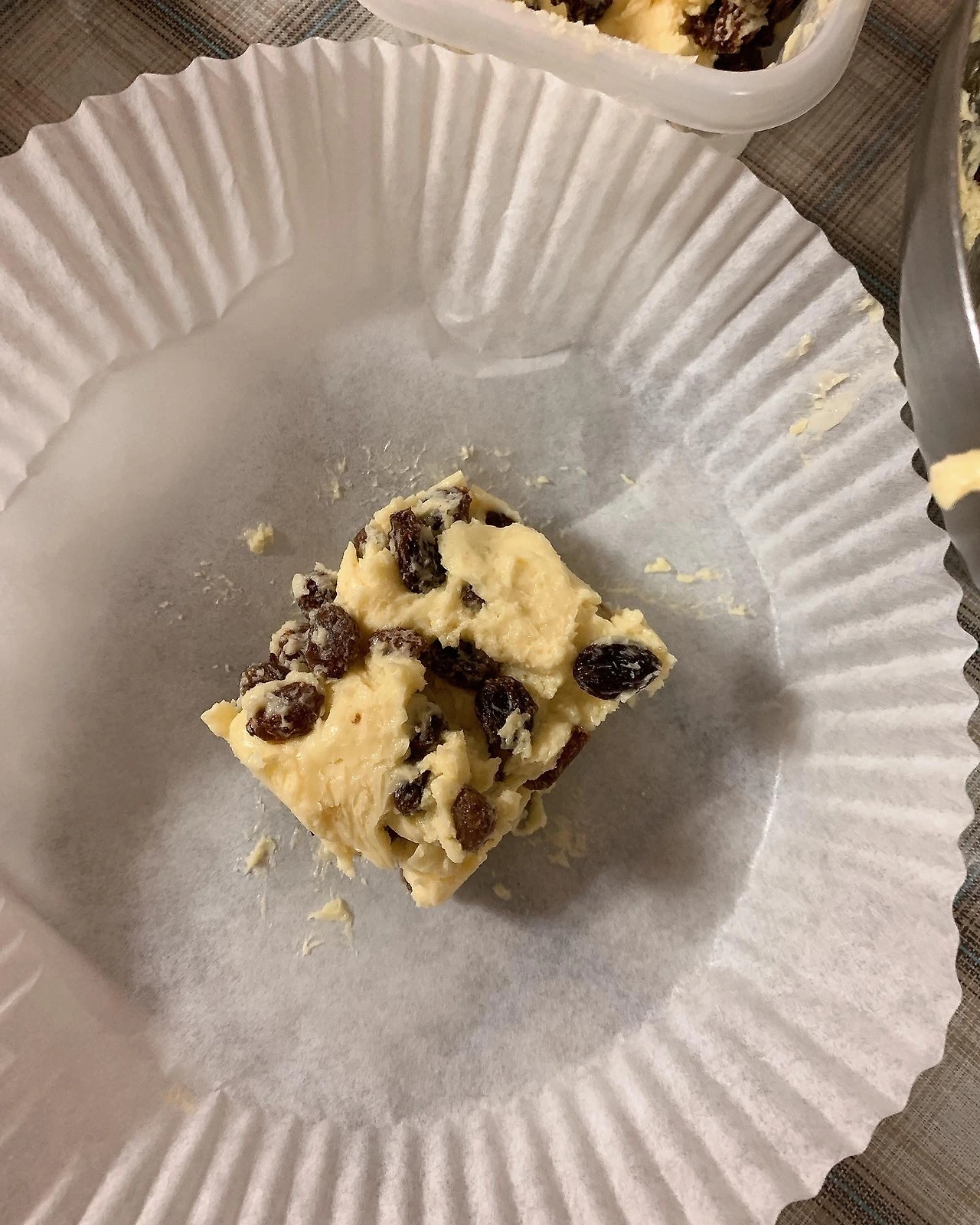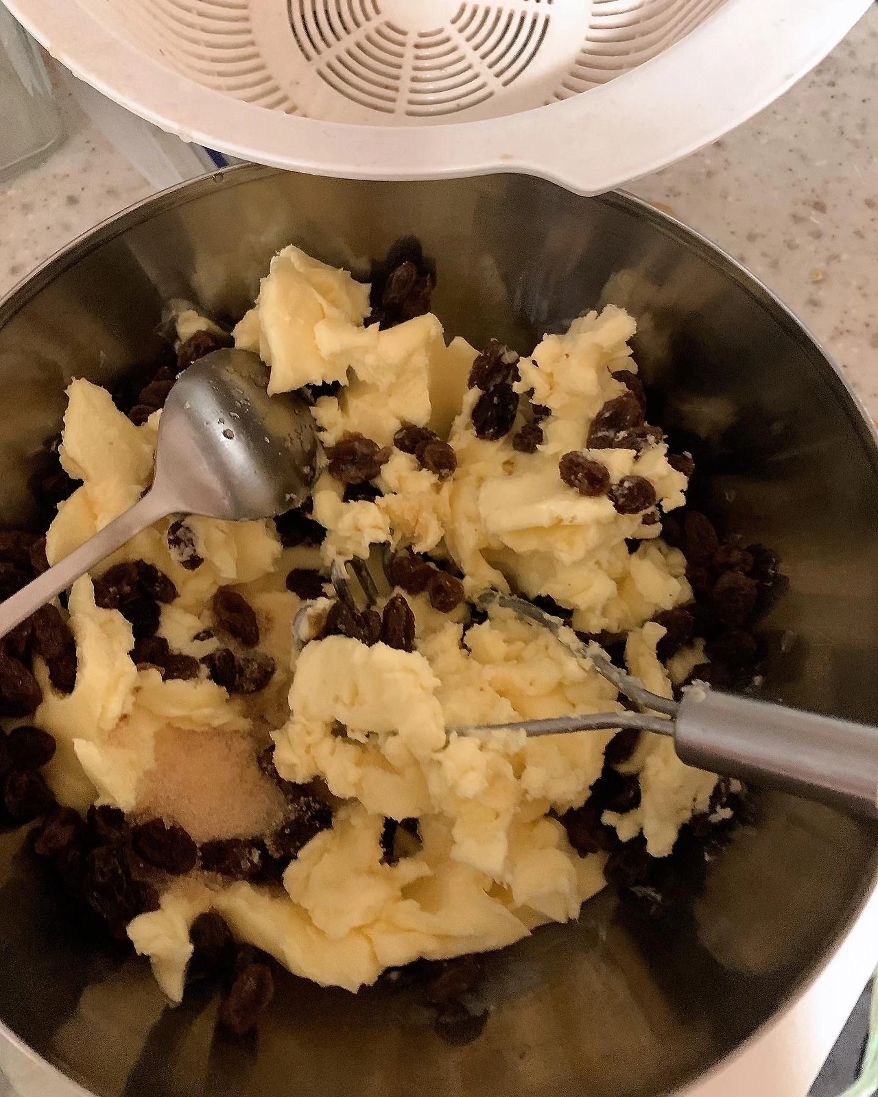 건포도에 럼을 부어 불리고, 버터는 실온에서 서서히 녹인다. 이 과정에서 주의할 점이 있다. 일단 건포도는 뜨거운 물에 살짝 데치거나 혹은 럼을 부을 때 물을 두세 스푼 넣어주는 게 좋다. 그래야 럼이 건포도에 확실히 더 잘 스며든다. 이 과정에서 시행착오를 하는 통에 물을 넣고 30분 더 불리는 과정을 거쳐야 했고 결국 시작한 지 6시간이 지나서야 만들기를 시작했다.