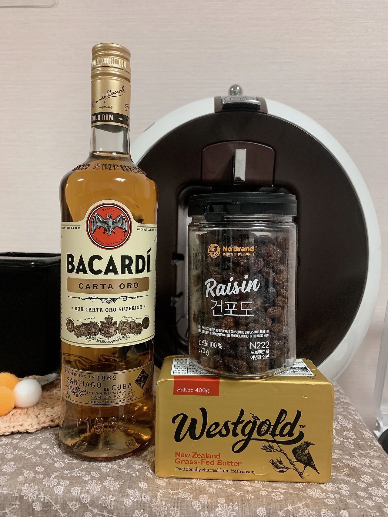다행히 집에서 길 하나만 건너면 술도매창고가 있어서 급한 대로 바카디 럼을, 바로 옆 N 마트에서 버터와 건포도를 구할 수 있었다. 일단 재료를 구하는 데는 확실히 운이 따랐다.