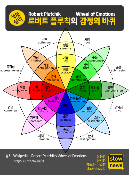 식사일기를 쓰는 법은 비교적 간단하지만, 그 전에 감정을 표현하는 방법과 어휘를 풍부하게 만들 필요가 있다. 로버트 플루칙이 만든 '감정의 수레바퀴'라는 표를 참고해 시작하면 좋다.