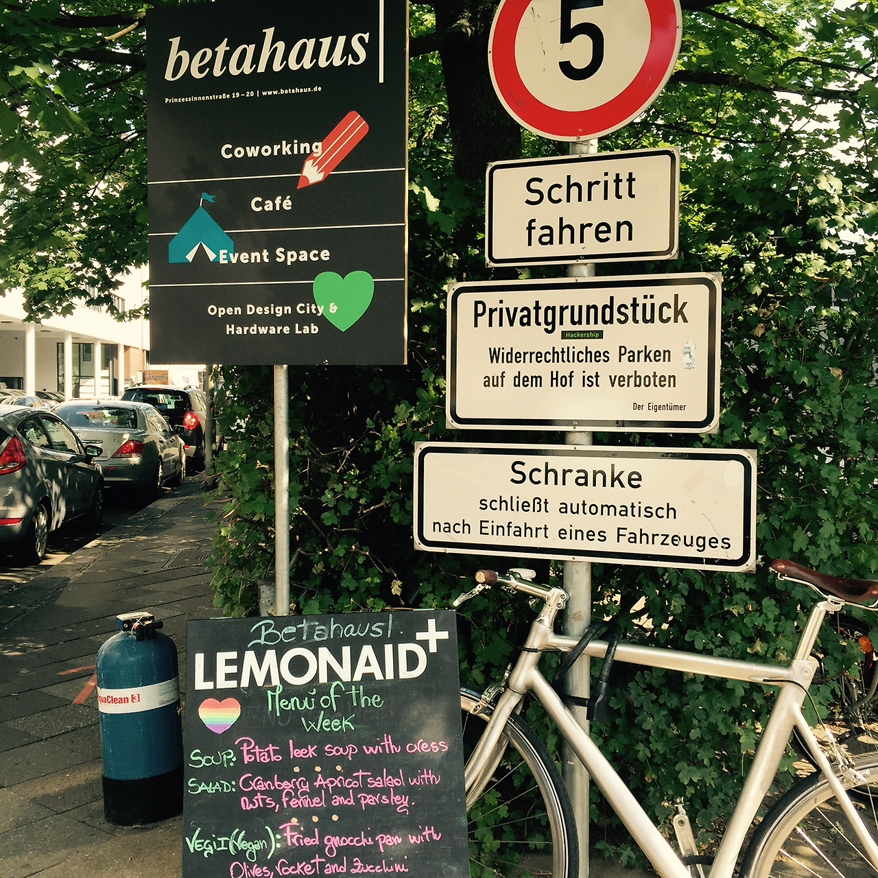 Betahaus는 공유 사무실이다. (이제는 지루한 단어가 된 공유, 한때는 너도 힙 또는 핫한 단어였거늘.) 베를린의 핫인지 힙인지 여튼 그 플레이스인 크로이츠베르그(Kreuzberg)에 있다. 1층은 카페, 2층부터 사무실이다. 2009년에 만들어졌는데, 사무실이 없는 소자본 창업자들에게 공간(책상과 사무집기류를 포함)을 빌려준다. 회의실이나 강당 같은 시설도 있다. 매월 160유로(20만원/매월 12일만 빌리면 90유로=12만원) 정도. 공간만 공유하기에 각자 다른 일을 하지만, 창업이라는 공통 목표가 있기에 서로 필요한 정보도 나누고 사람도 구하는 스타트업 생태계가 됐다고 한다. (http://www.betahaus.com/berlin/) 독일 내에서는 베를린과 함부르그에 있고, 스페인 바르셀로나와 불가리아 소피아에도 사무실이 있다. 1층 카페는 누구나 드나들 수 있다.