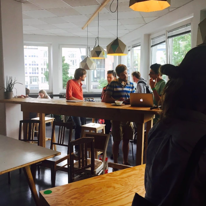먼저 테마파크 입장권 같은 팔찌를 채워준다. 음식을 먹으면서 참석자들과 자연스럽게 대화를 할 수도 있다. 무려 각자 간단한 자기 소개를 하는 시간을 가진다. 창업을 꿈꾸는 사람, 창업을 한 사람, 투자처를 찾는 사람, 조언을 해주고 싶은 사람 등 스타트업에 관심 있는 사람들이 모인다. 국적은 다양했다. 내가 방문한 날만 해도 한국, 독일, 오스트리아, 노르웨이, 이탈리아 등 다양한 나라에서 온 사람들이 있었다. 독일, 특히 베를린은 영어로 의사소통하기 쉽고 물가와 임대료가 저렴해 스타트업씬이 활발하다고 한다.