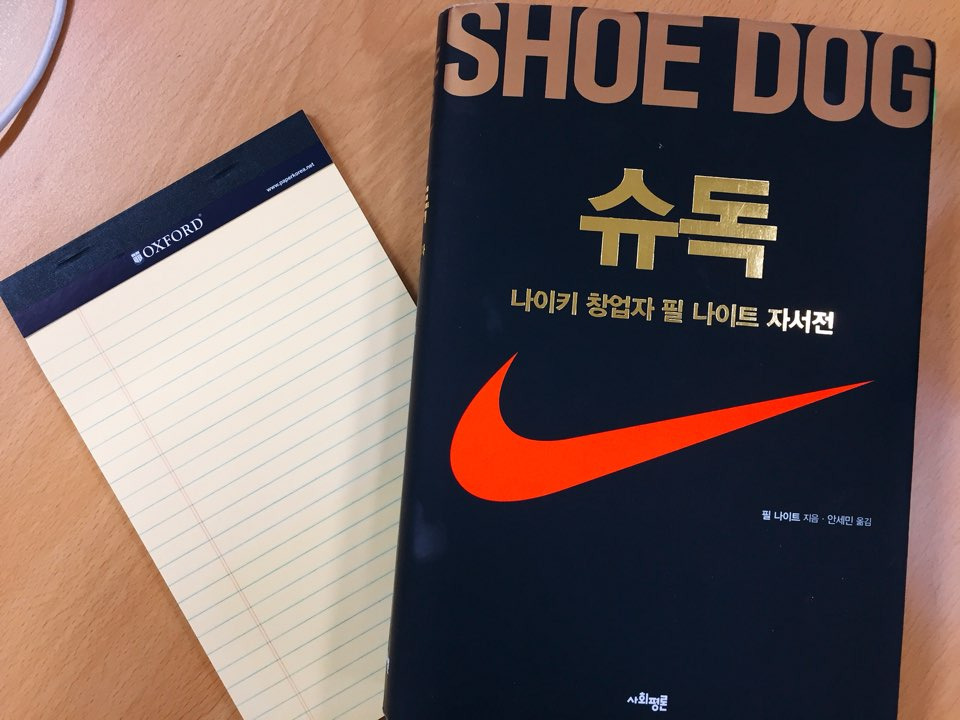 이번 주말 동안 '슈독(Shoe Dog)*'이란 책을 읽었다. 나이키 창업자 필 나이트의 자서전이다. 1962년 창업부터 주식공모를 하기 직전인 1980년까지 내용을 다뤘다. 무려 두께가 3cm짜리였는데 정말 후루룩 읽었다.