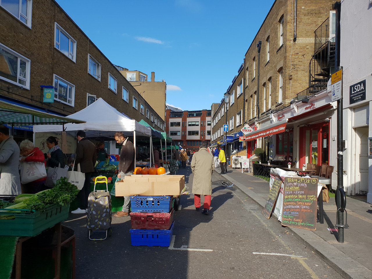 4. 런던 파머스 마켓(London Farmer's Market): 매주 정해진 요일에 런던 각 지역에서 열리는 장터. 주로 토요일, 일요일이지만 지역에 따라 평일도 있음. 런던 근교에서 생산된 제품만 판매가능. 농축산물, 치즈, 빵 등을 주로 판매. 지역별 장소는 홈페이지 참고. https://www.lfm.org.uk/ 시간이 안 맞으면 상설 마켓인 버로우마켓(Borough Market/언더그라운드 Borough 역)에 가면 됨.