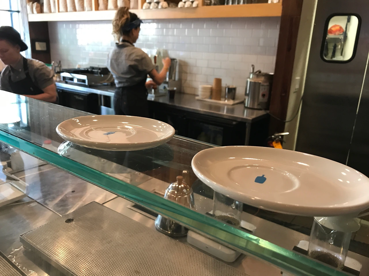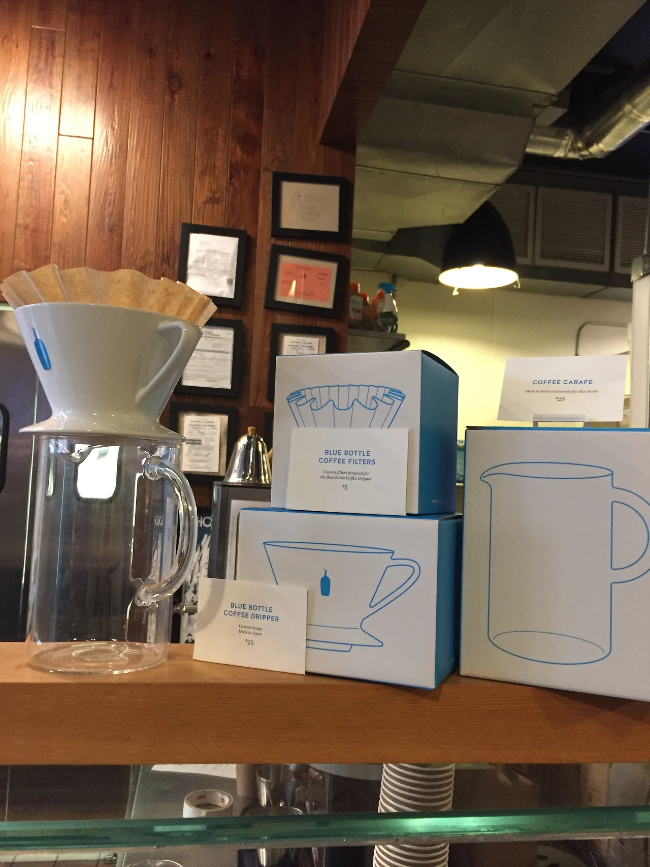 드리퍼와 여과지는 블루보틀에서 직접 만들었다. 직원들은 누구라도 최고의 커피맛을 낼 수 있도록 교육 받는다. 주방 동선은 커피를 잘 만들기 위해 전략적으로 기획했다.