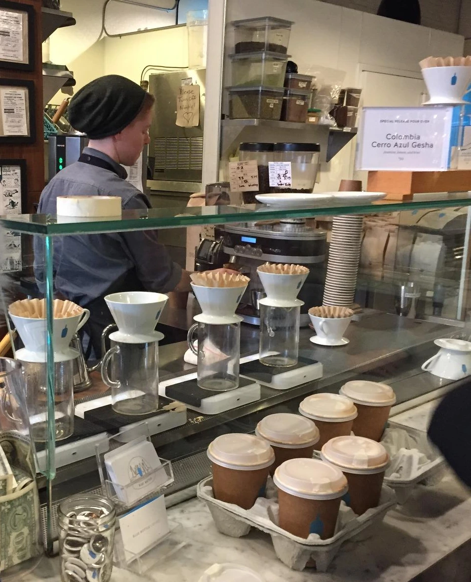 파머스마켓에서, 손님이 주문을 하는 동시에 원두를 갈고, 드리퍼에 넣어 직접 내리는 방식은 어찌 보면 미친 짓이었다. 한 잔에 10분 넘게 걸리는 커피라니. 근데 그게 사람들을 끌어들였다.