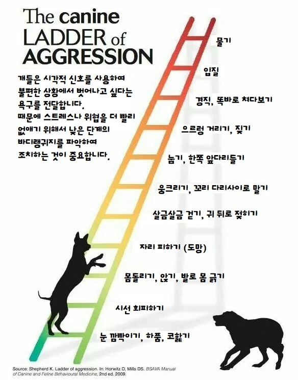 특별히 대단한 것을 공부할 필요까지 없다. 반려견의 '바디랭귀지*' 중에 스트레스 반응에 대한 몇 가지만 알고 있으면 그것으로 족하다.