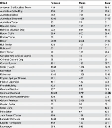 거의 7만마리에 육박하는 반려견을 대상으로 오랫동안 조사한 자료이니만큼 신뢰성이 높을 것 같습니다.