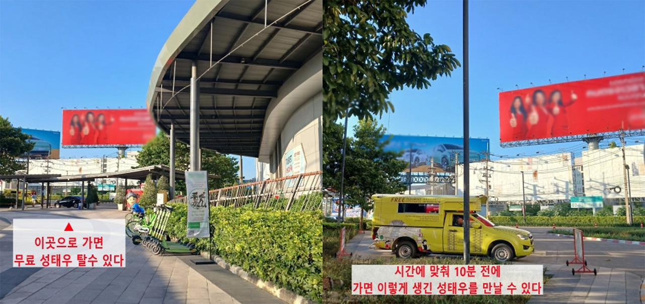 KFC가 있는 1층 정문으로 나와 오른쪽으로 이동하면 다양한 교통수단을 이용할 수 있는 간이 터미널이 있다. 그곳에서 이용할 수 있는 무료 셔틀부터 대중교통 정보를 정리했다.
