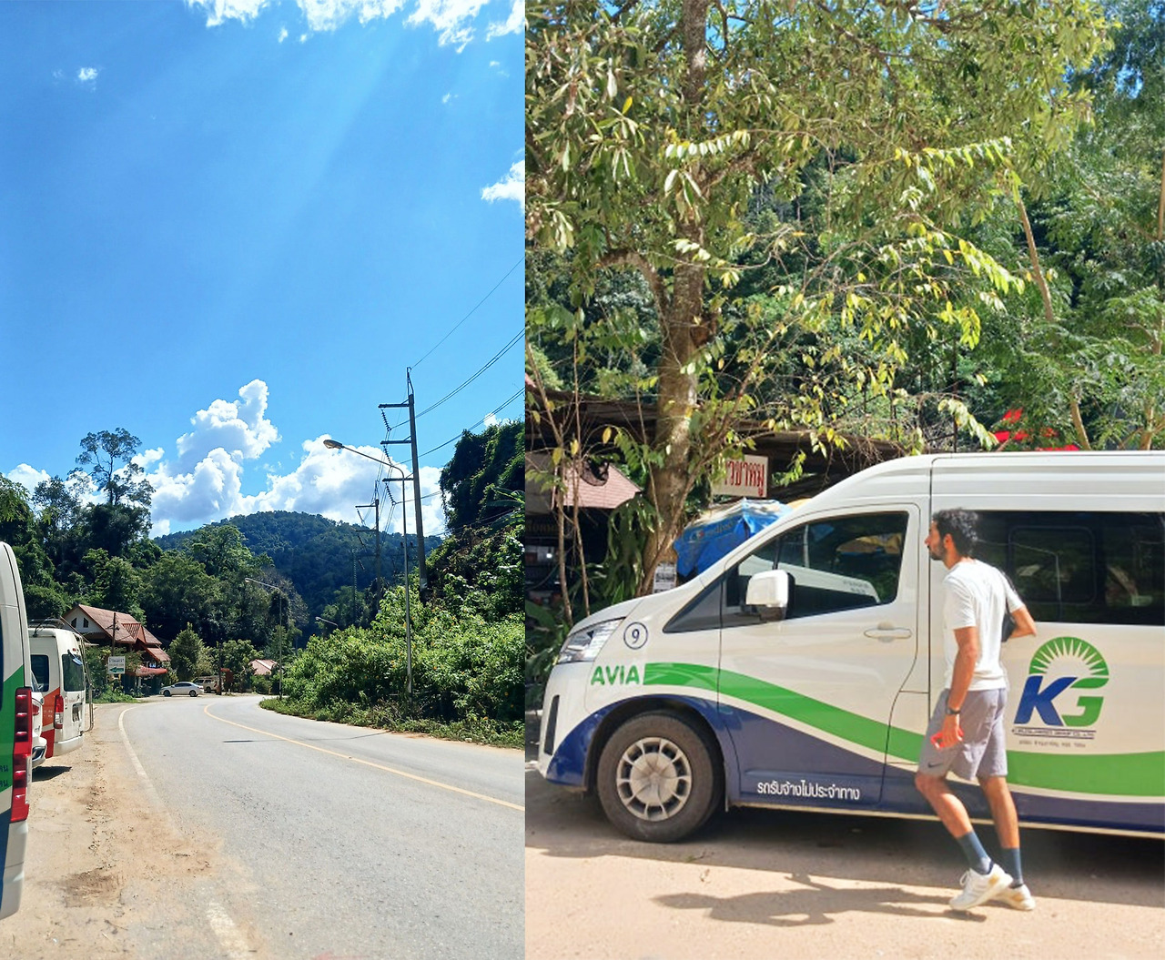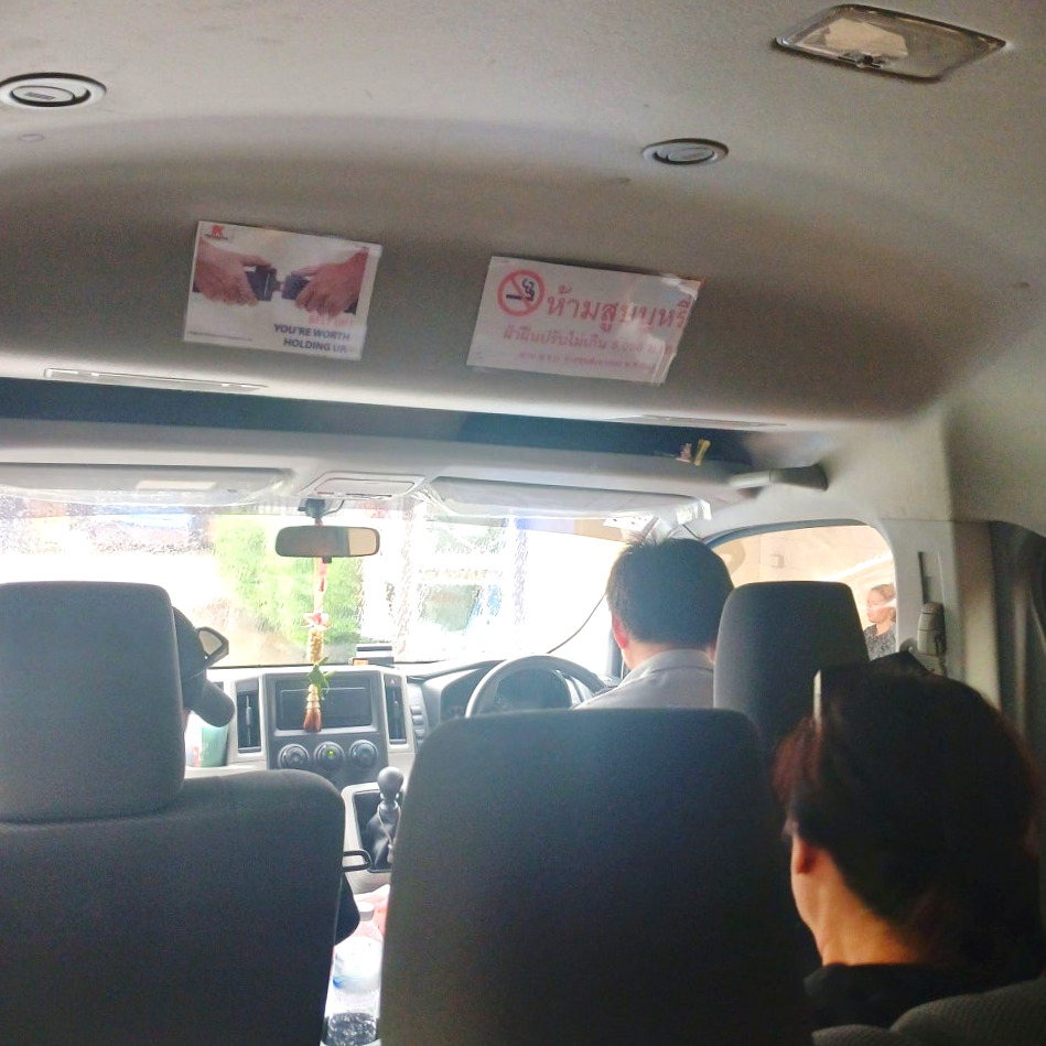 5년 전, 빠이로 떠날 때 입었던 추억의 바지를 그대로 입고, 조수석에 다시 한번 착석했다. 이 자리는 넓고, 시야가 탁 트여 있어 멀미가 있거나 몸이 불편하다면 무조건 예약하기를 추천한다. Prempracha 차량은 깔끔했고, 기사님도 단정한 유니폼을 입고 계셨다. AYA보다 한 단계 업그레이드된 '프리미엄 미니밴' 느낌이었다.