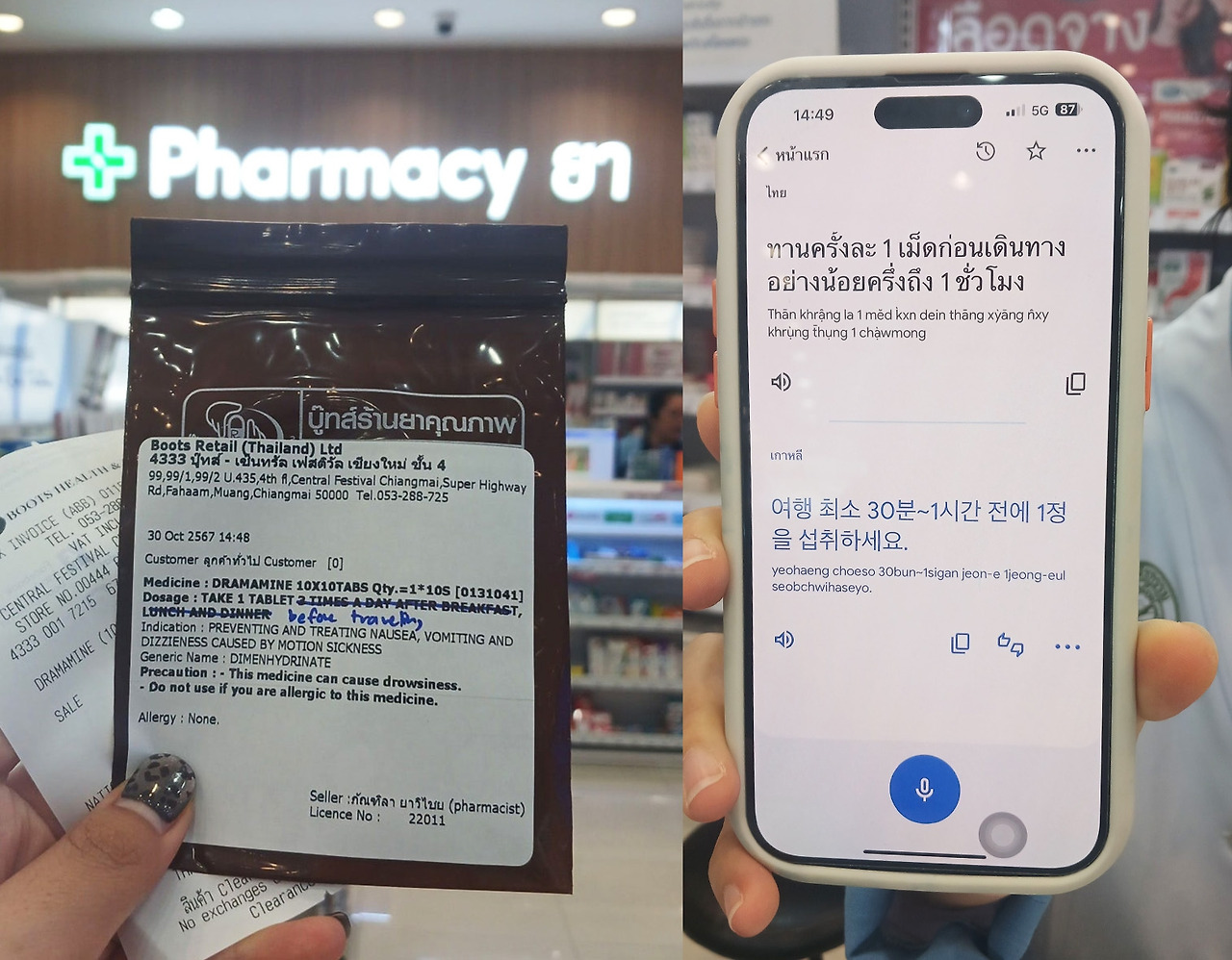 이처럼 멀미약이 이름값을 톡톡히 하는 셈이었다. 한 알만 먹어도 몽롱하고 피곤할 수 있으니 이점을 참고해서 복용하는 것을 권장한다.