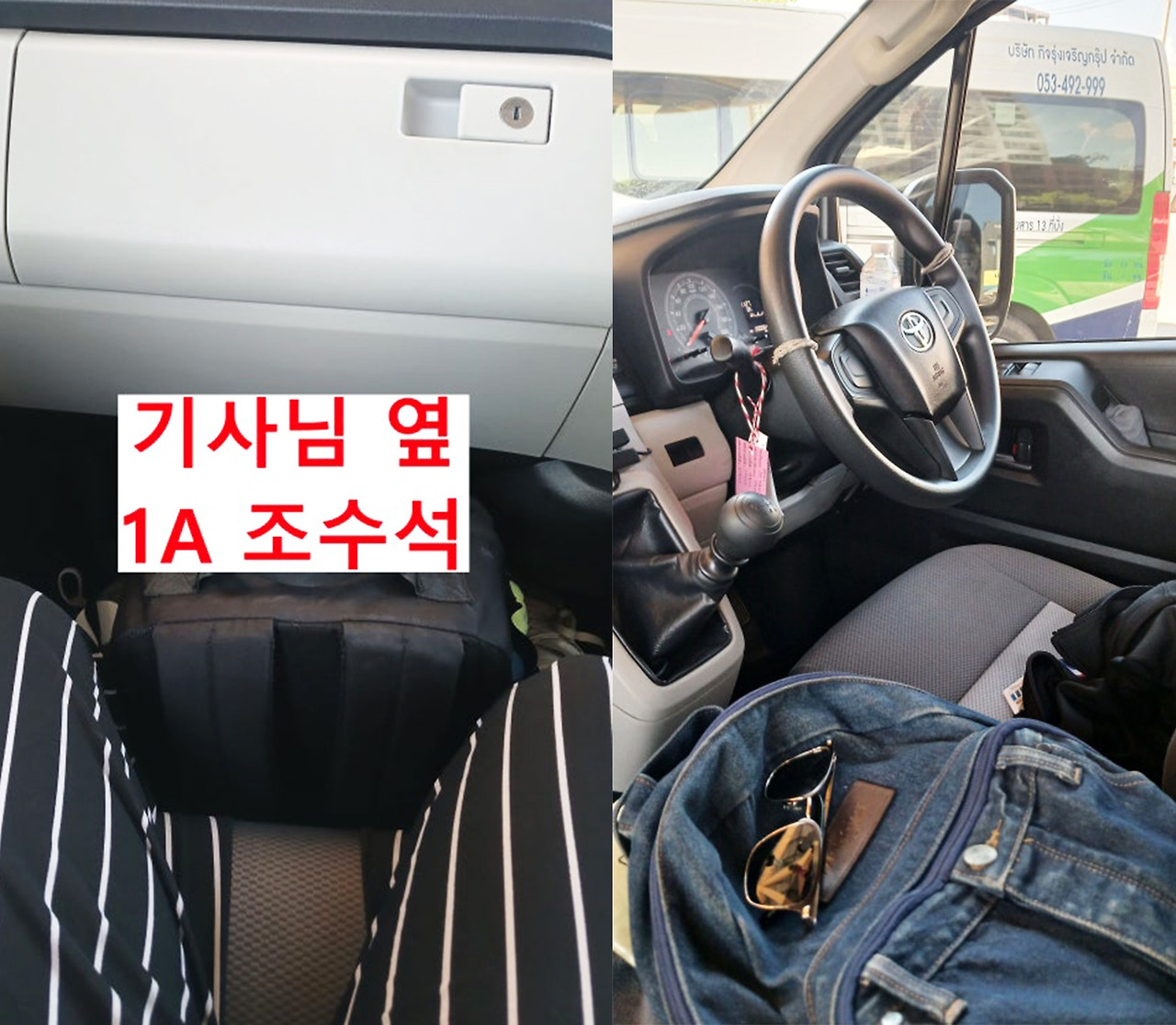 조수석을 제외한 다른 자리는 위 사진처럼 좌석표가 걸려 있었다. 빠이로 가는 차에는 없었지만, 돌아오는 차에는 걸려 있어 자리 찾기가 한결 쉬웠다.