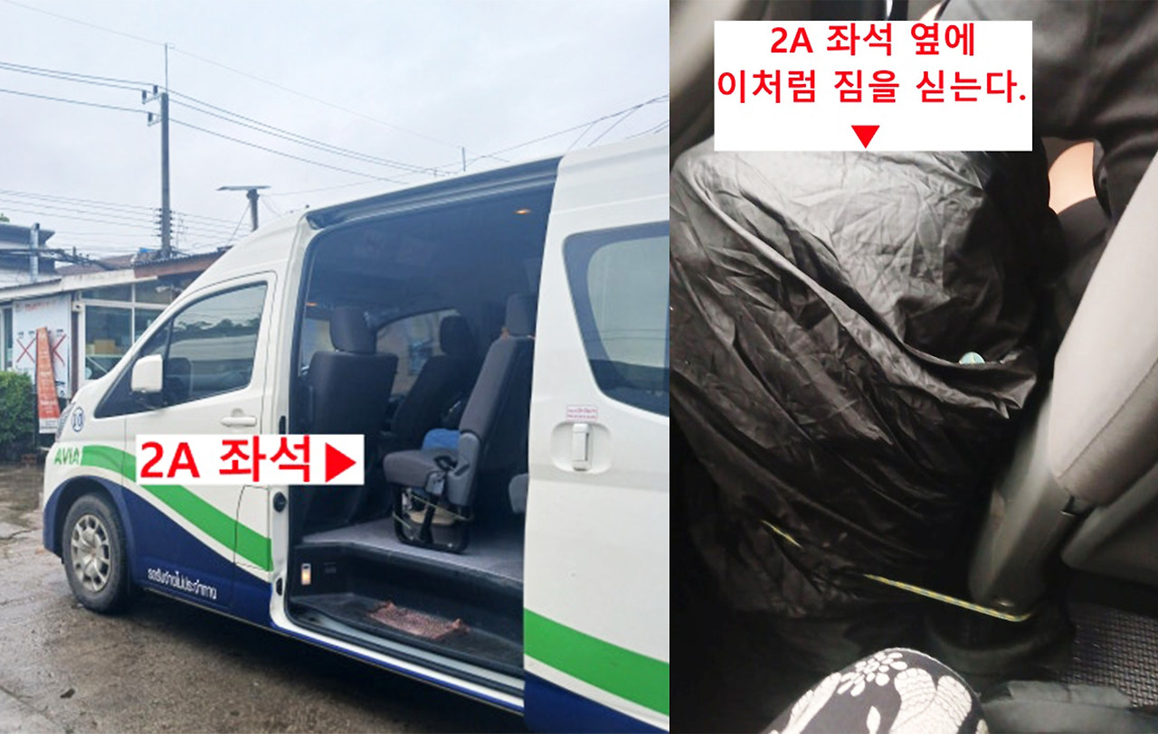 오랜 시간 이동하는 만큼, 빠이행 미니밴 좌석 선택은 생각보다 중요했다. 좌석마다 편차가 크기 때문에, 편하게 가려면 '파워 J'의 계획 능력이 반드시 필요했다.