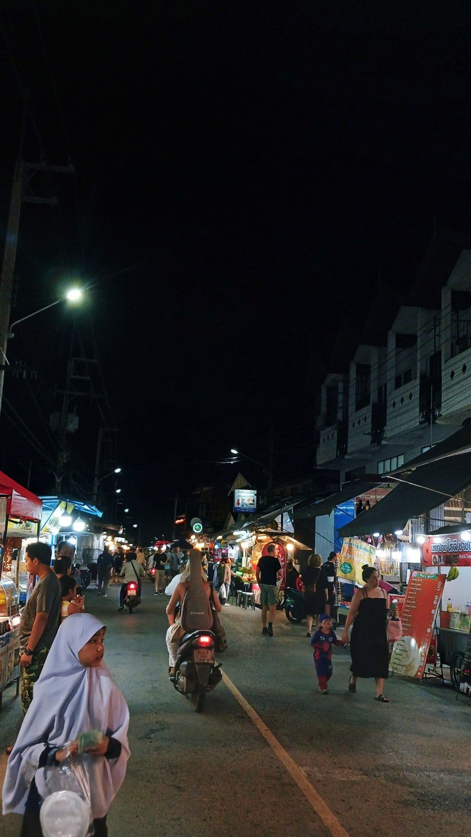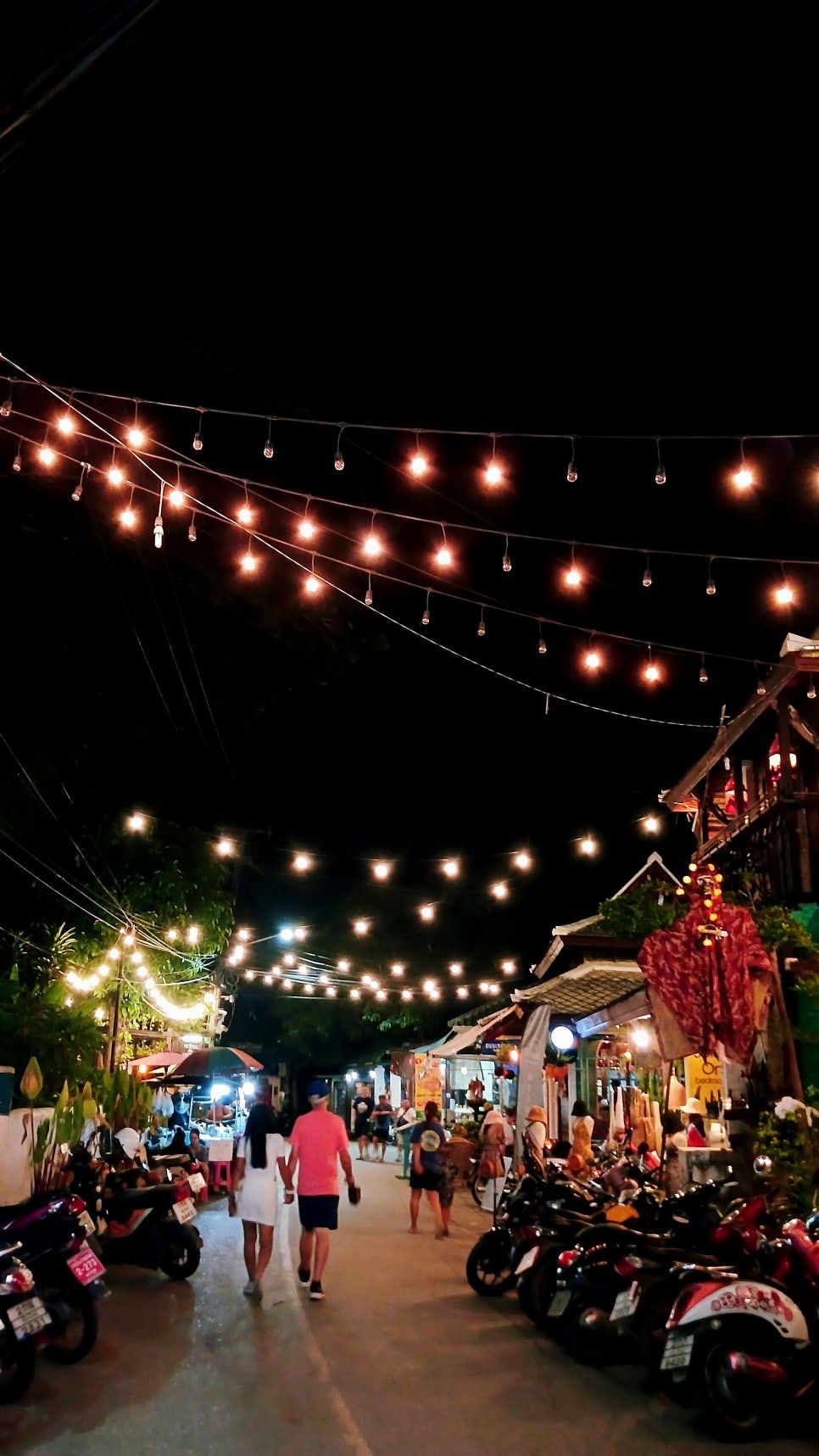 낮에는 햇살이 너무 뜨겁고 sticky 한 공기에 눌려, 거리를 걷는 사람이 거의 없다. 대부분의 여행자는 카페나 음식점에서 시간을 보내며 어둑해지기를 기다린다. 그러다 해가 완전히 기울면, 이 거리는 빠이에서 가장 활기찬 명소로 변한다.